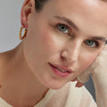 Boucles d'oreilles Imcaki finition or 18k. Africa Basic incarne la simplicité raffinée, des pièces intemporelles aux lignes douces et à l'éclat supplémentaire des zircones. Bijoux basiques sans prétention parfaits pour un usage quotidien, mais qui peuvent aussi convenir pour des occasions spéciales.