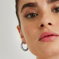 Boucles d'oreilles Shiwa finition en bain de rhodium. África Basic incarne la simplicité raffinée, des pièces intemporelles aux lignes douces et à l'éclat supplémentaire des zircones. Bijoux basiques sans prétention parfaits pour un usage quotidien, mais qui peuvent aussi convenir pour des occasions spéciales.