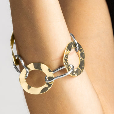Les bracelets épais et saisissants, avec leur combinaison d'or et d'argent, sont parfaits pour ceux qui recherchent un bijou à la fois moderne et intemporel. La dualité des métaux offre non seulement une polyvalence, mais symbolise également l'union de deux forces puissantes, reflétant la force et la sophistication de qui les prend.