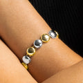 Les bracelets épais et saisissants, avec leur combinaison d'or et d'argent, sont parfaits pour ceux qui recherchent un bijou à la fois moderne et intemporel. La dualité des métaux offre non seulement une polyvalence, mais symbolise également l'union de deux forces puissantes, reflétant la force et la sophistication de qui les prend.