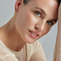 Boucles d'oreilles Rysil en zircone brillante avec finition en or jaune 18 carats. Africa Basic incarne la simplicité raffinée, des pièces intemporelles aux lignes douces et à l'éclat supplémentaire des zircones. Bijoux basiques sans prétention parfaits pour un usage quotidien, mais qui peuvent aussi convenir pour des occasions spéciales.