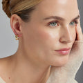 Boucles d'oreilles avec fermoir omega kuvuca finition en or jaune 18 carats. África Basic incarne la simplicité raffinée, des pièces intemporelles aux lignes douces et à l'éclat supplémentaire des zircones. Bijoux basiques sans prétention, parfaits pour un usage quotidien, mais qui peuvent aussi convenir pour des occasions spéciales.