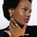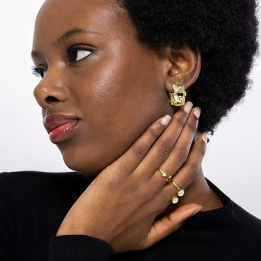 Boucles d'oreilles Raner finies en or jaune 18K. Africa Basic incarne la simplicité raffinée, des pièces intemporelles aux lignes douces et à l'éclat supplémentaire des zircones. Bijoux basiques sans prétention parfaits pour un usage quotidien, mais qui peuvent aussi convenir pour des occasions spéciales.