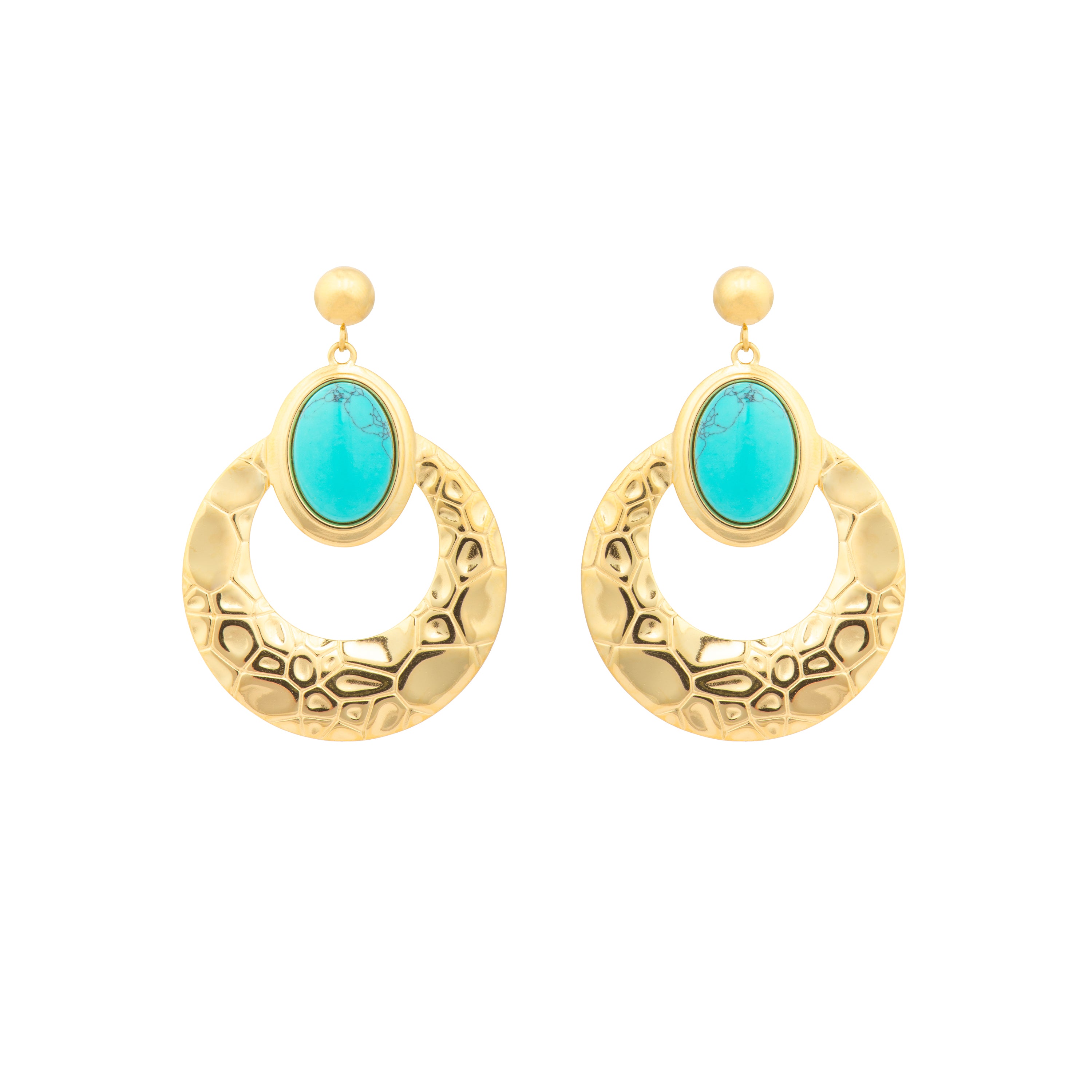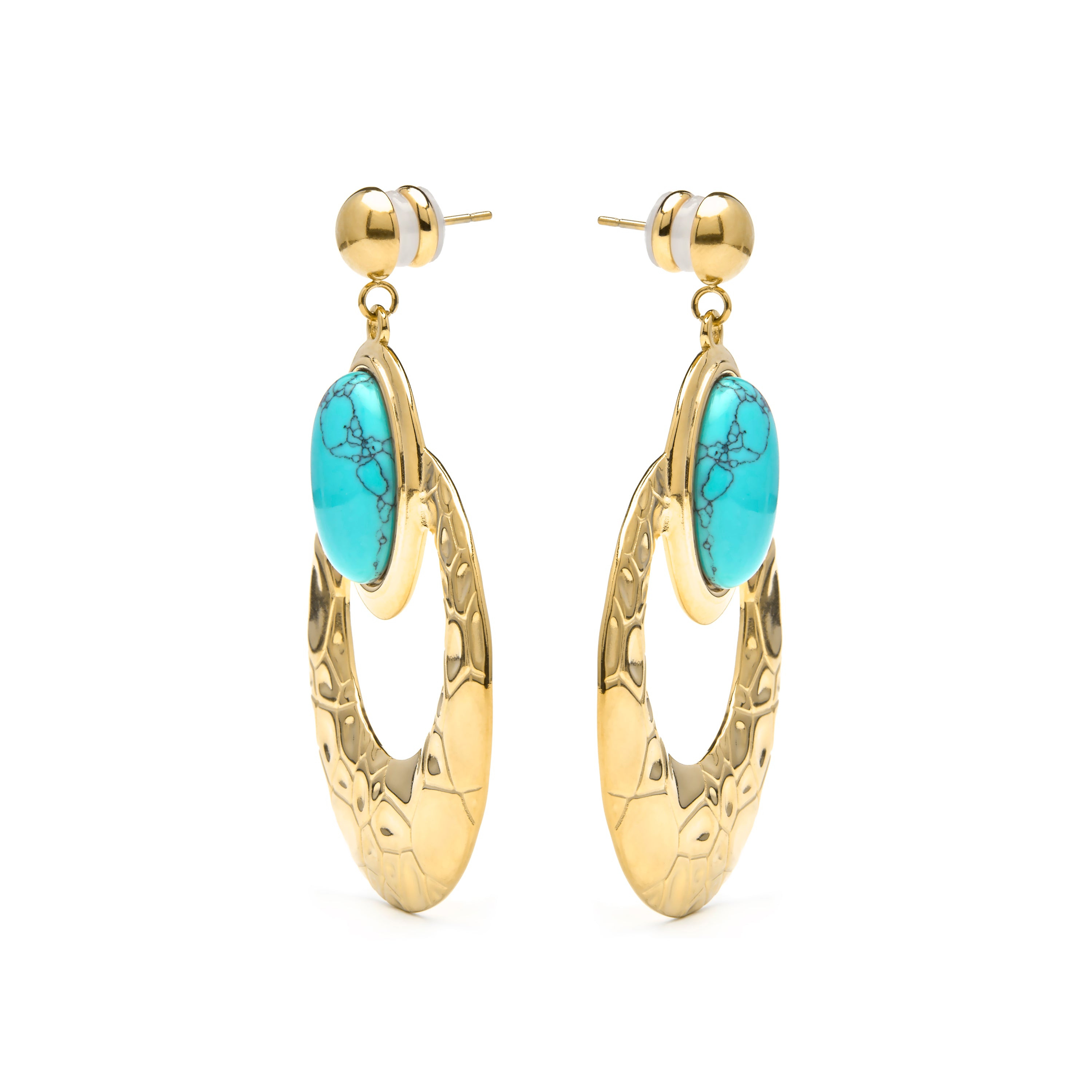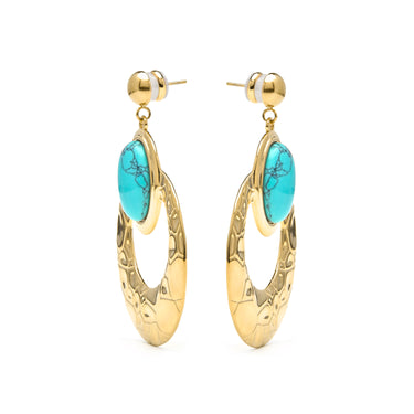 Boucles d'oreilles finition or jaune 18k et turquoise - Rekbas