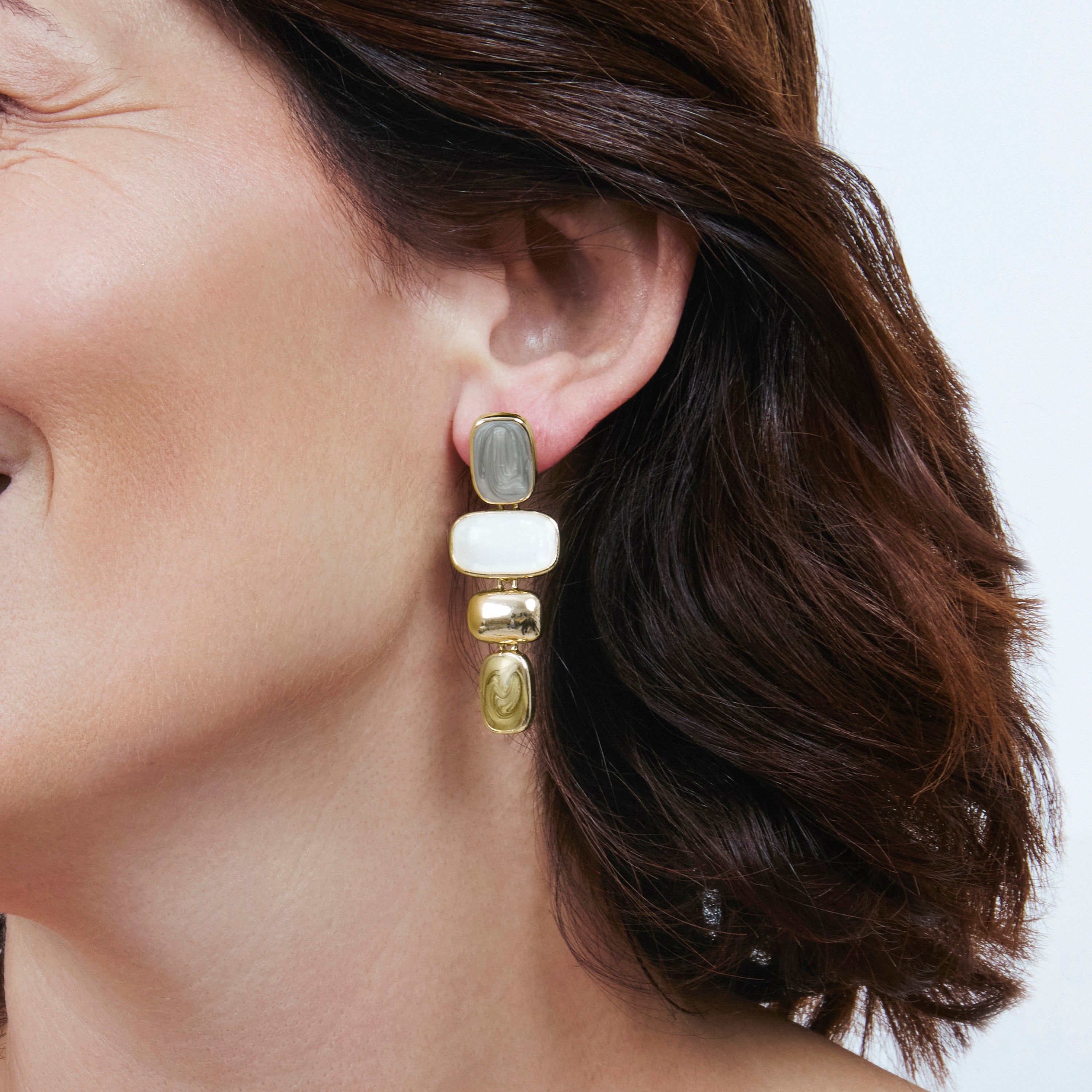 Boucles d'oreilles en nacre blanche finition or jaune 18 carats - Natha