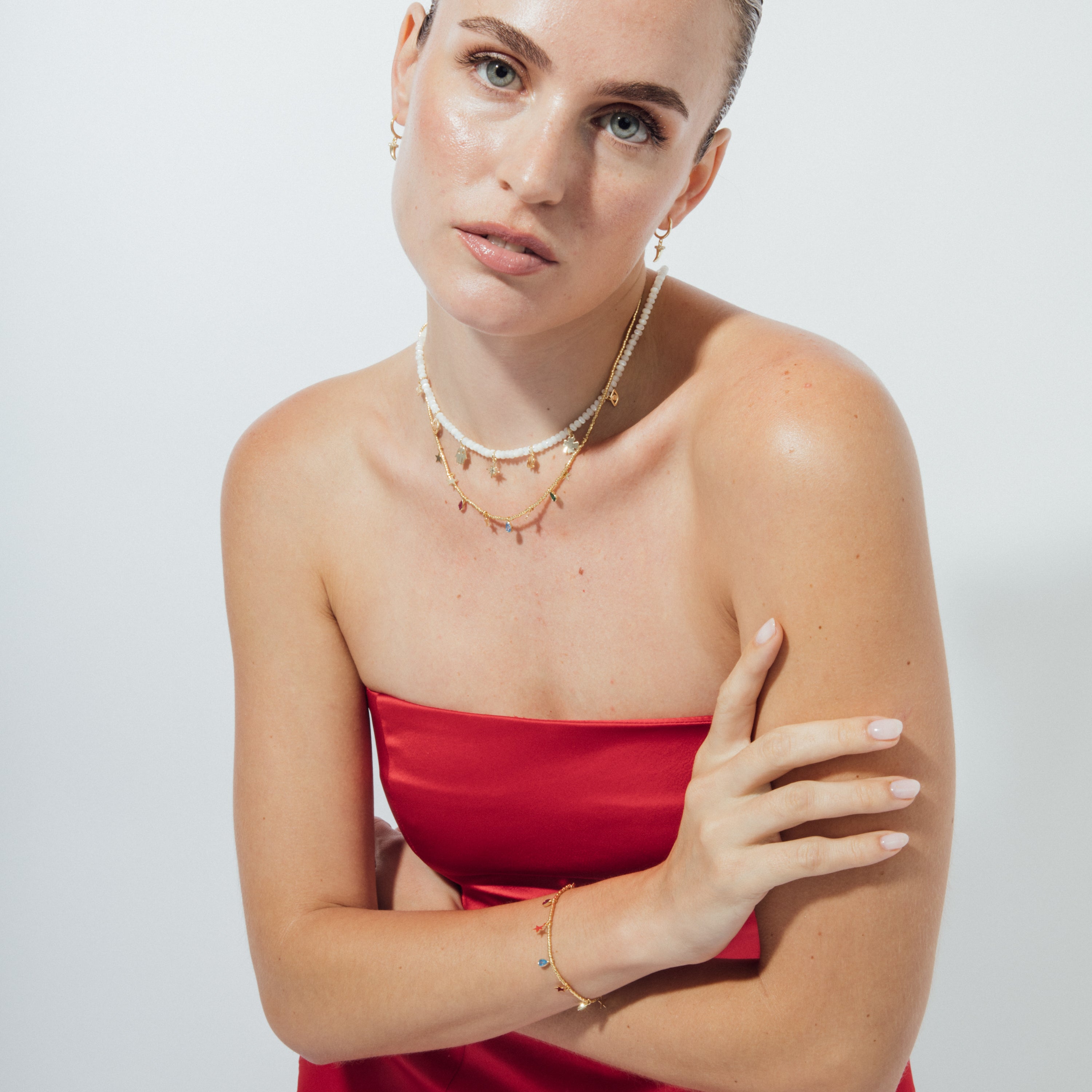 Bracelet en argent sterling 925 et zircon multicolore finition en or jaune 18k - Itza