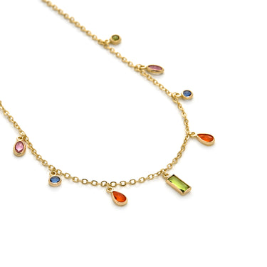 Collier Ayisha en zircon multicolore avec finition en or jaune 18 carats