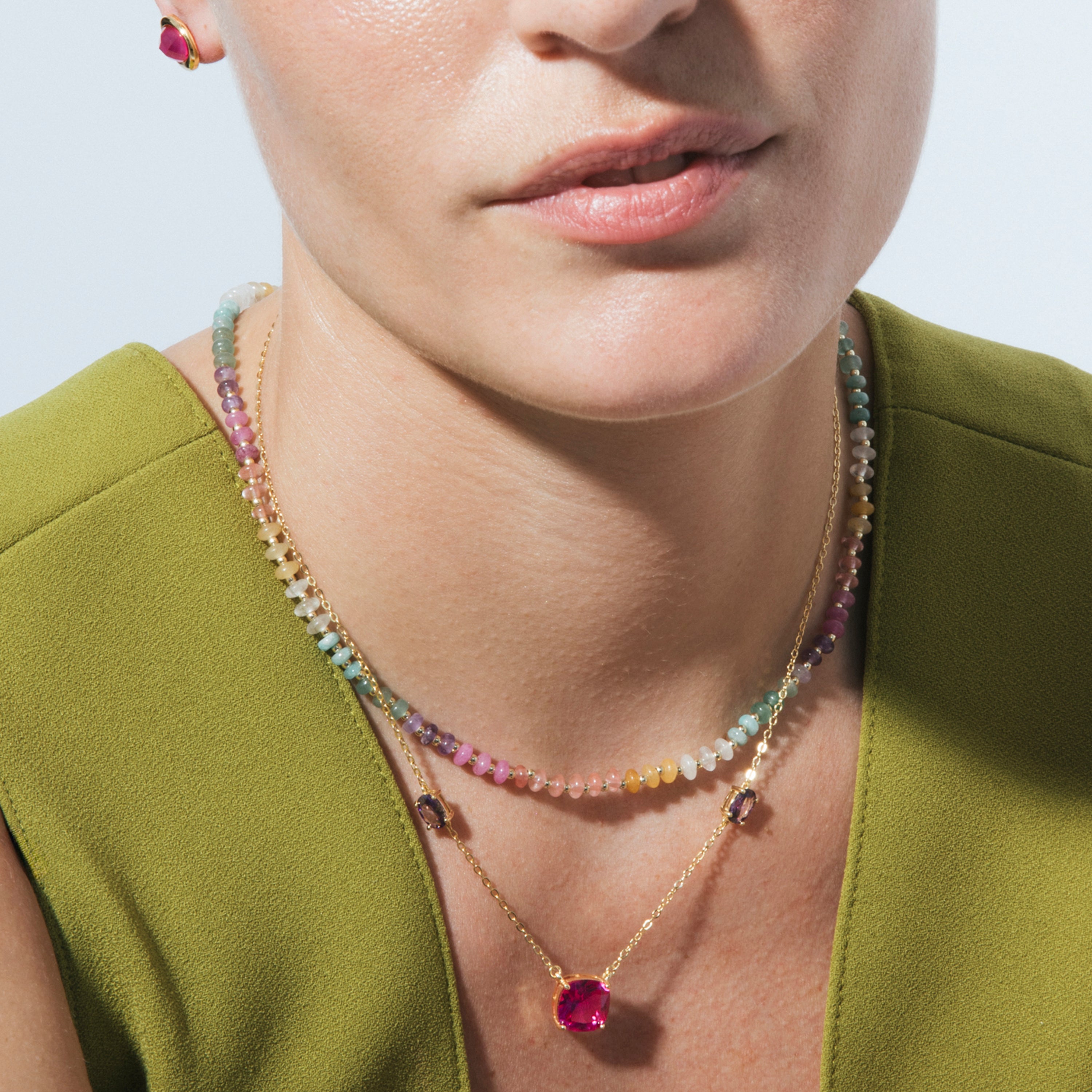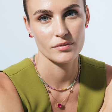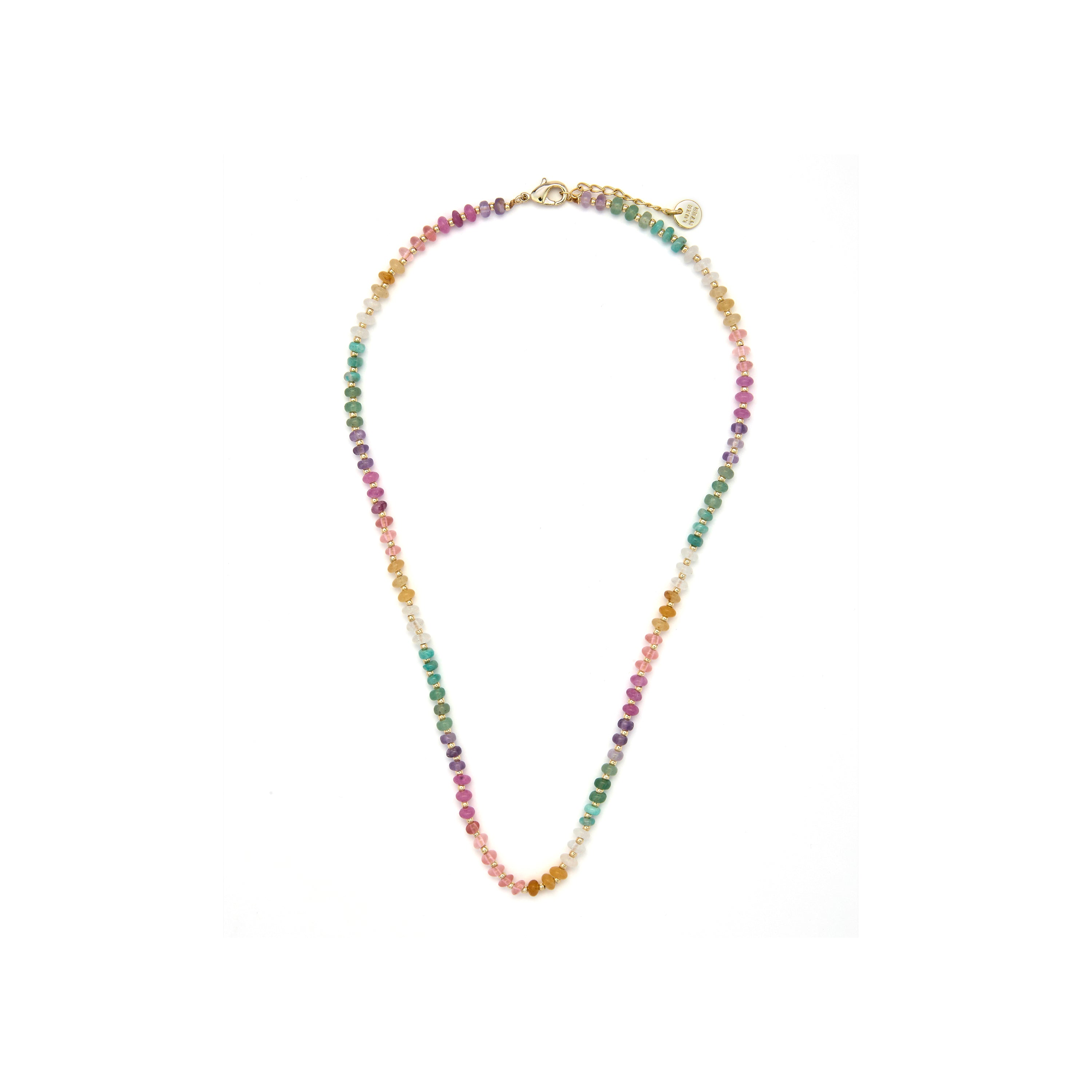 Collier Uwa en argent sterling 925 et pierre naturelle multicolore finition or jaune 18k