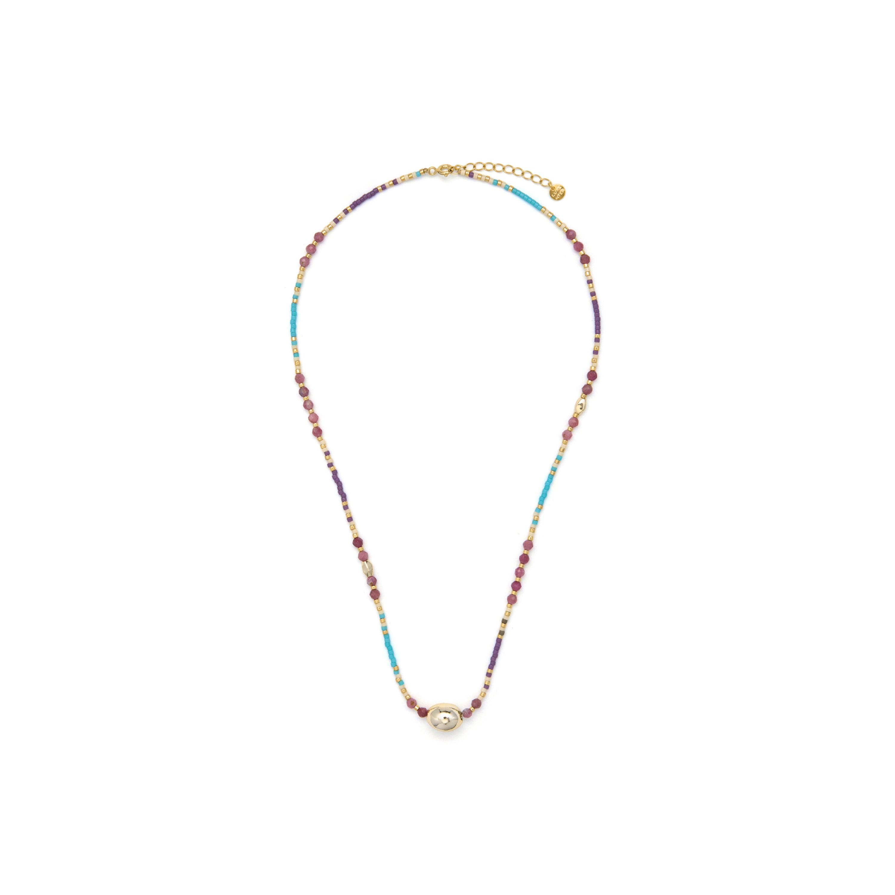 Collier Wasei en cristal multicolore finition or jaune 18k