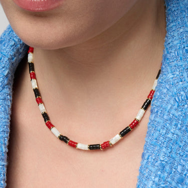 Collier en argent sterling 925 et corail finition or jaune 18k - Siraba