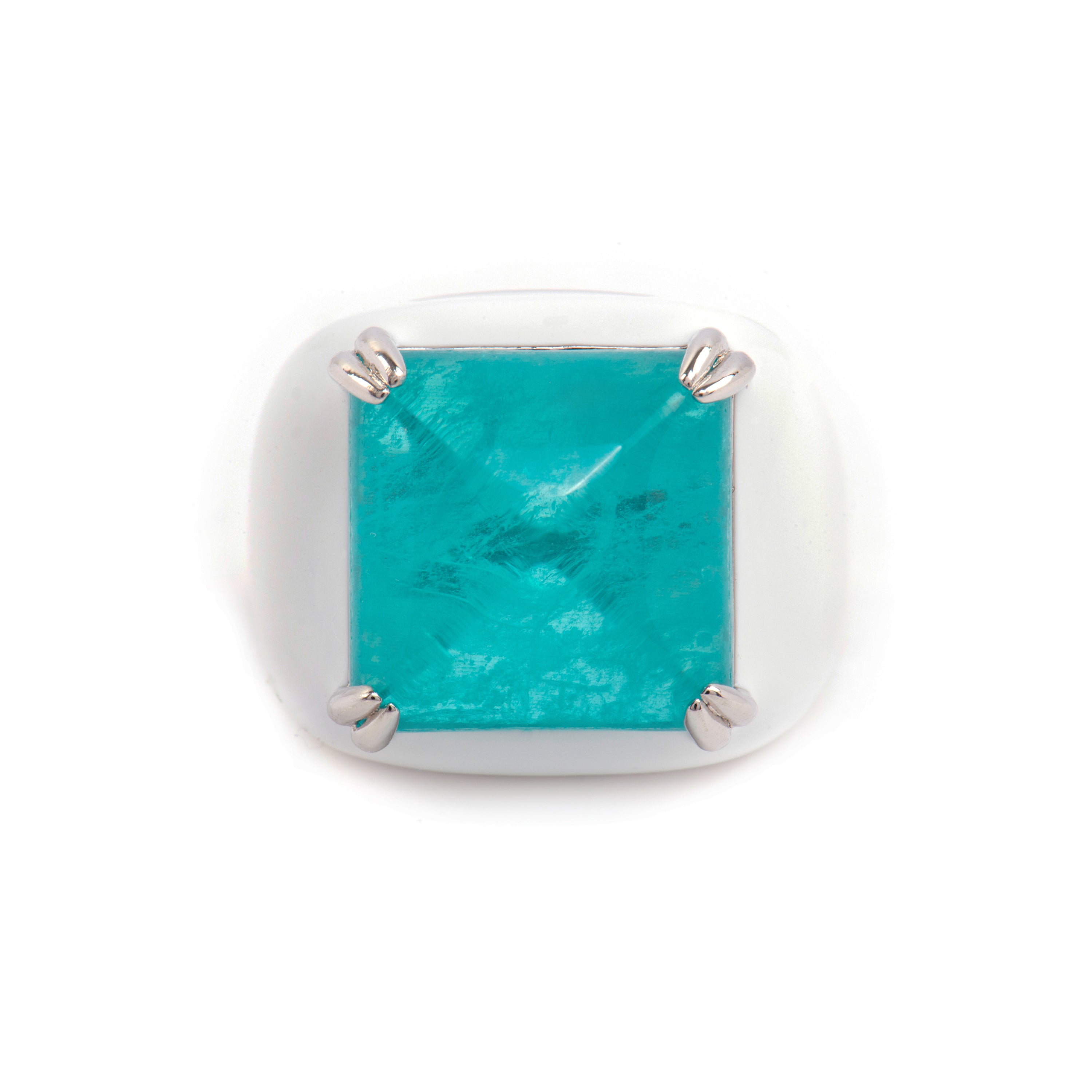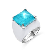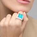 Bague Zadsi en argent sterling 925 et quartz hydrothermal vert Paraiba finition rhodium