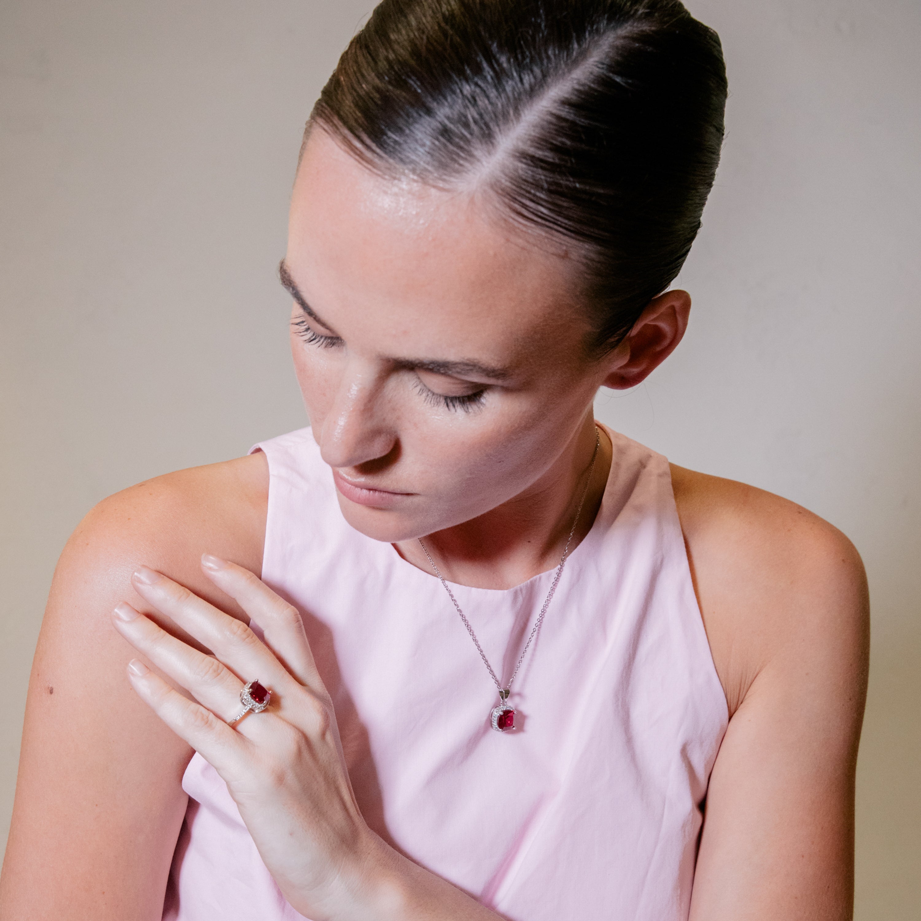 Collier en zircon rubis finition rhodium - Kada