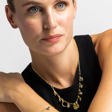 Collier en métal Nafir finition or 18 carats. Le style Boho est une esthétique d'esprit libre qui mélange différentes cultures et expressions artistiques dans un style éclectique mettant l'accent sur les éléments organiques et la nature.