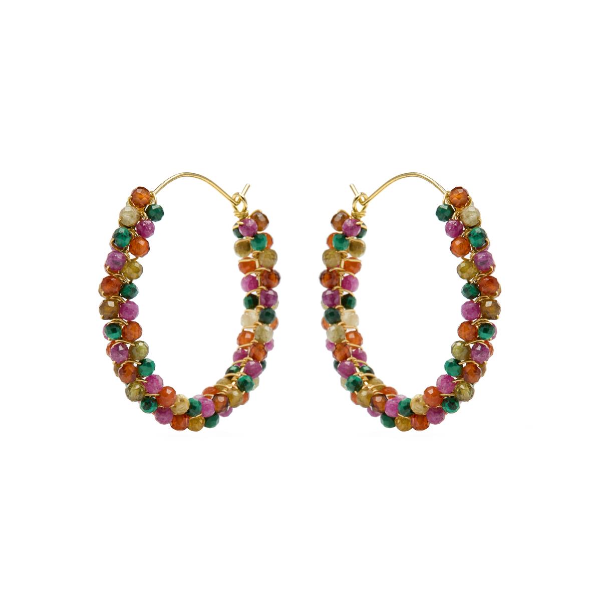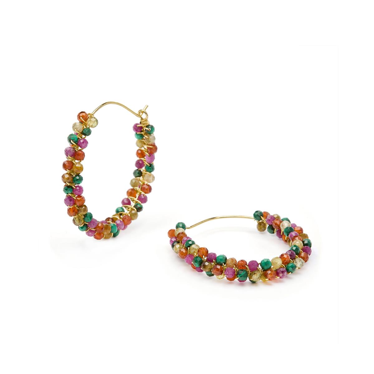 Boucles d'oreilles Rend en argent sterling 925 et tourmaline multicolore finition en or jaune 18k