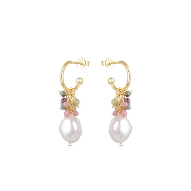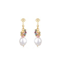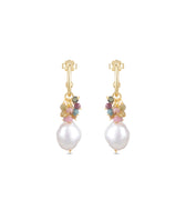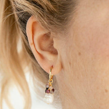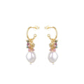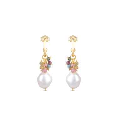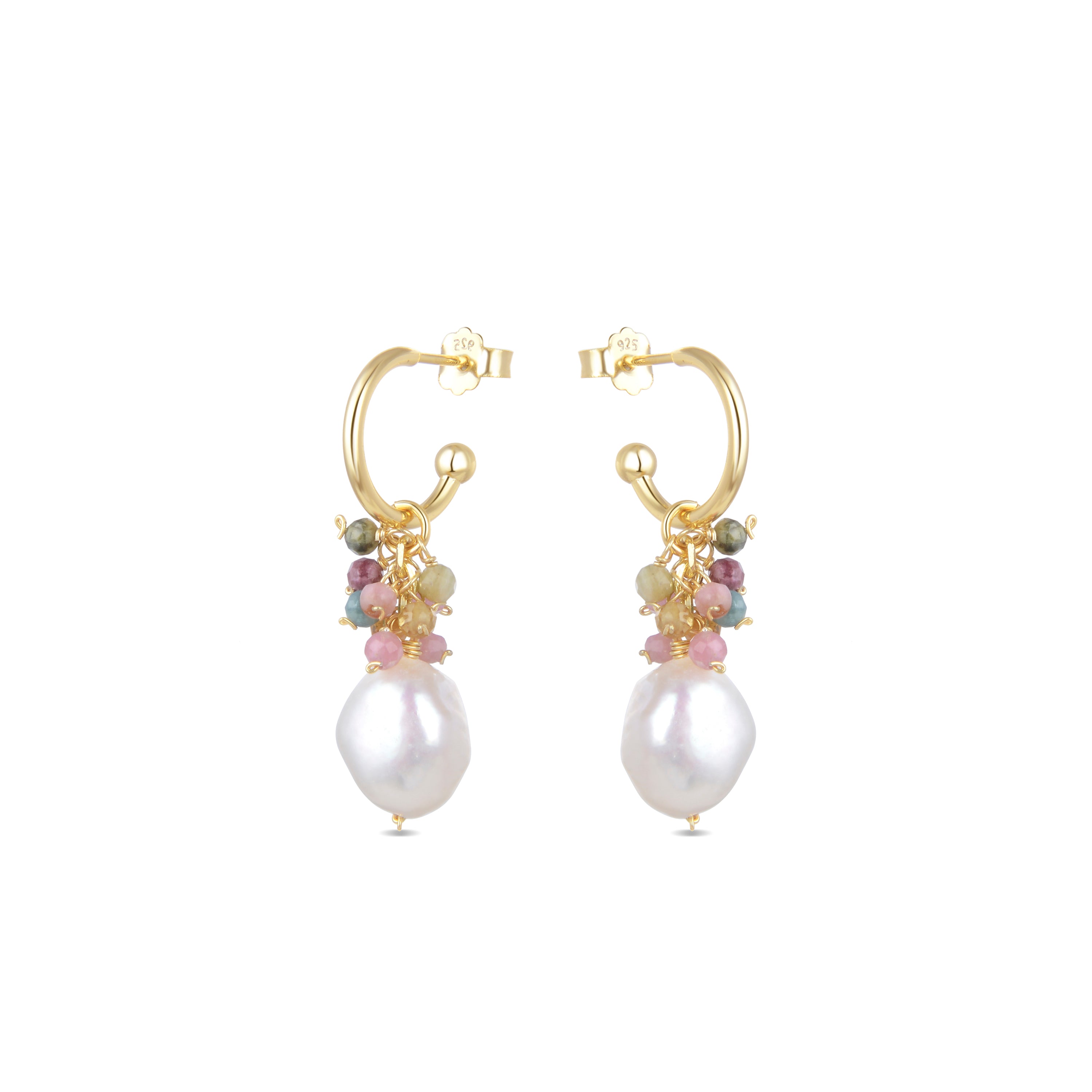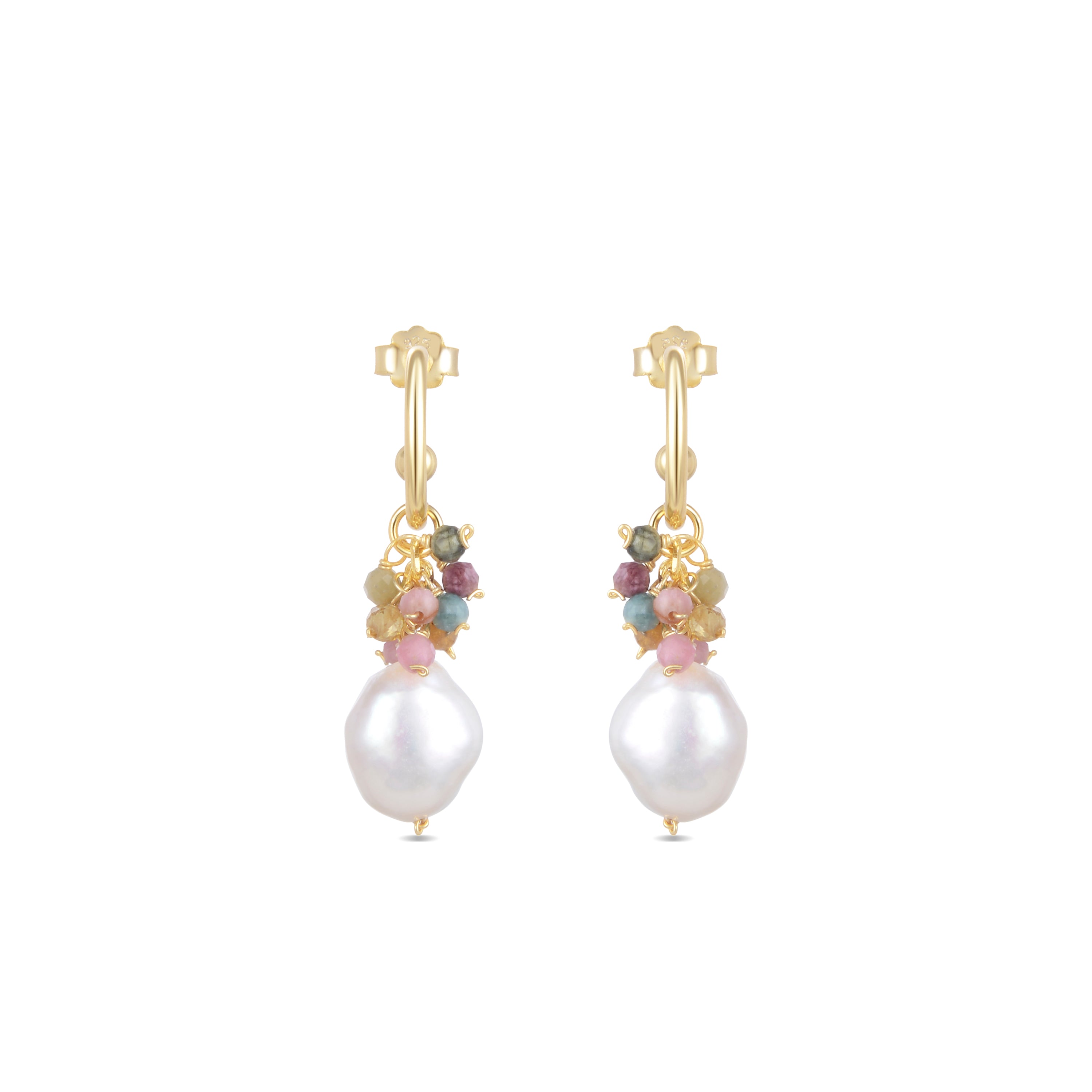 Boucles d'oreilles Sahme De Perla Blanca finies en or jaune 18 carats. Le nom de la ligne le confirme : ATELIER Pierres Semi-précieuses. Des bijoux qui s'inclinent devant un design atypique qui a placé ces créations sensuelles dans une position privilégiée : faisant partie de la garde-robe de la femme actuelle. Designs avec pierres semi-précieuses : améthystes, comme les plus classiques aux côtés de fluorites, quartz et aigue-marine soigneusement finis à la main..