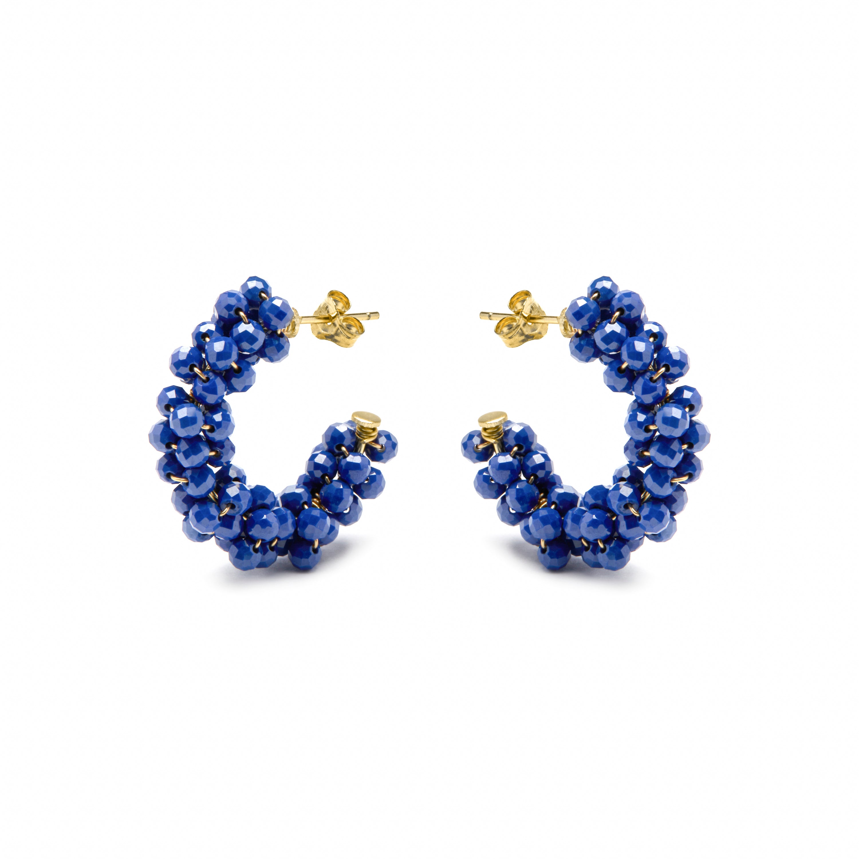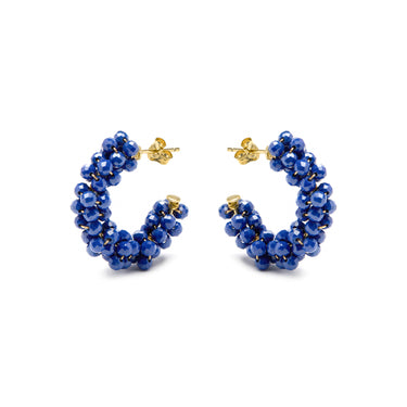 Boucles d'oreilles en argent sterling 925 et cristal bleu foncé finition or jaune 18k - Silka