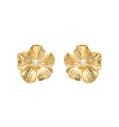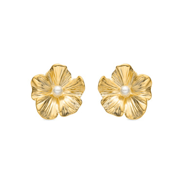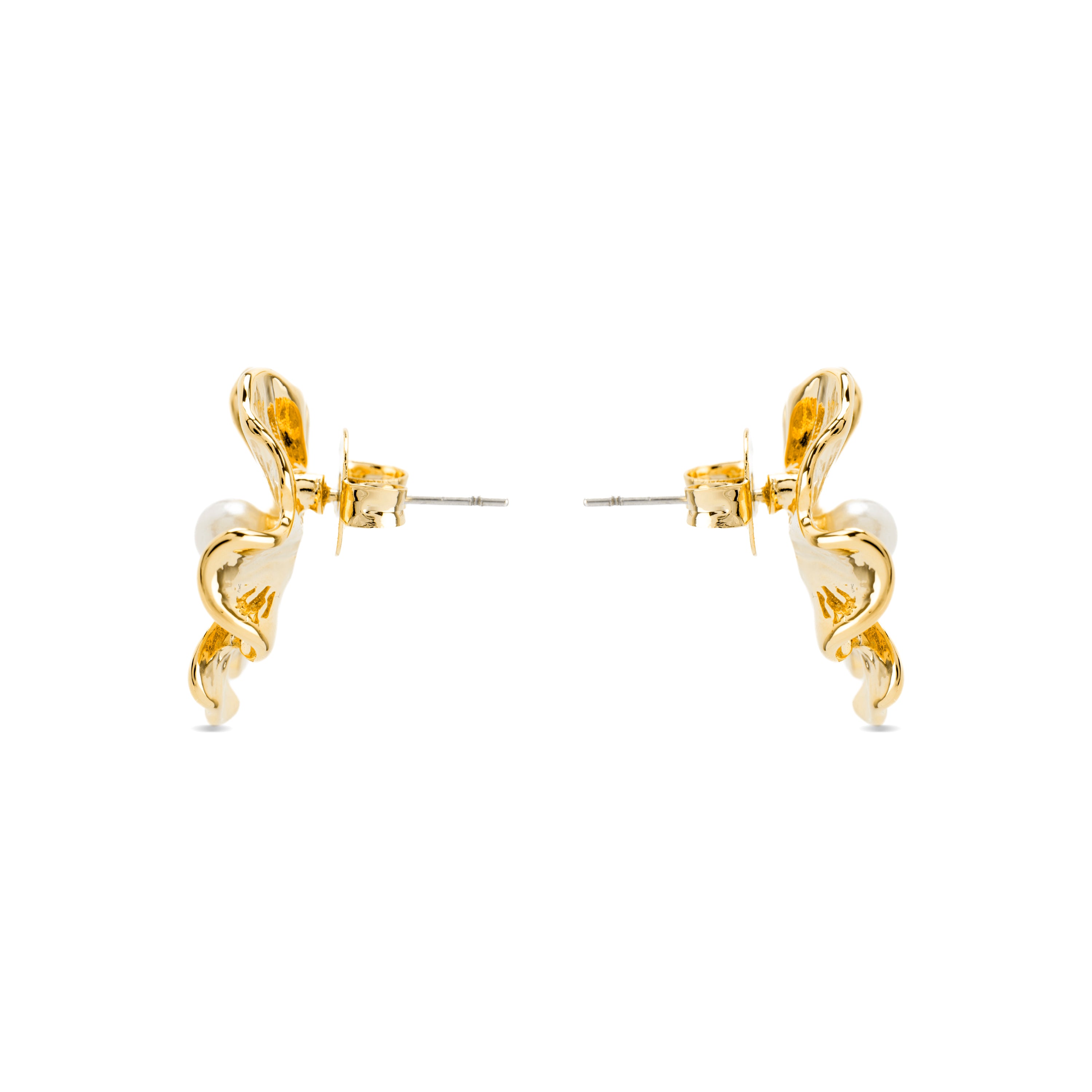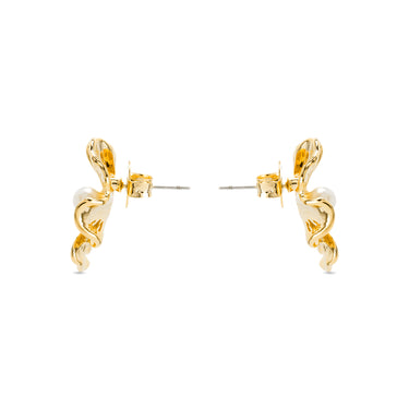 Boucles d'oreilles Leod avec perle blanche finition or 18 carats. L'Afrique devient la ligne parfaite pour les femmes avec de la personnalité, qui n'ont pas peur de prendre des risques et de porter des pièces avec un caractère propre.