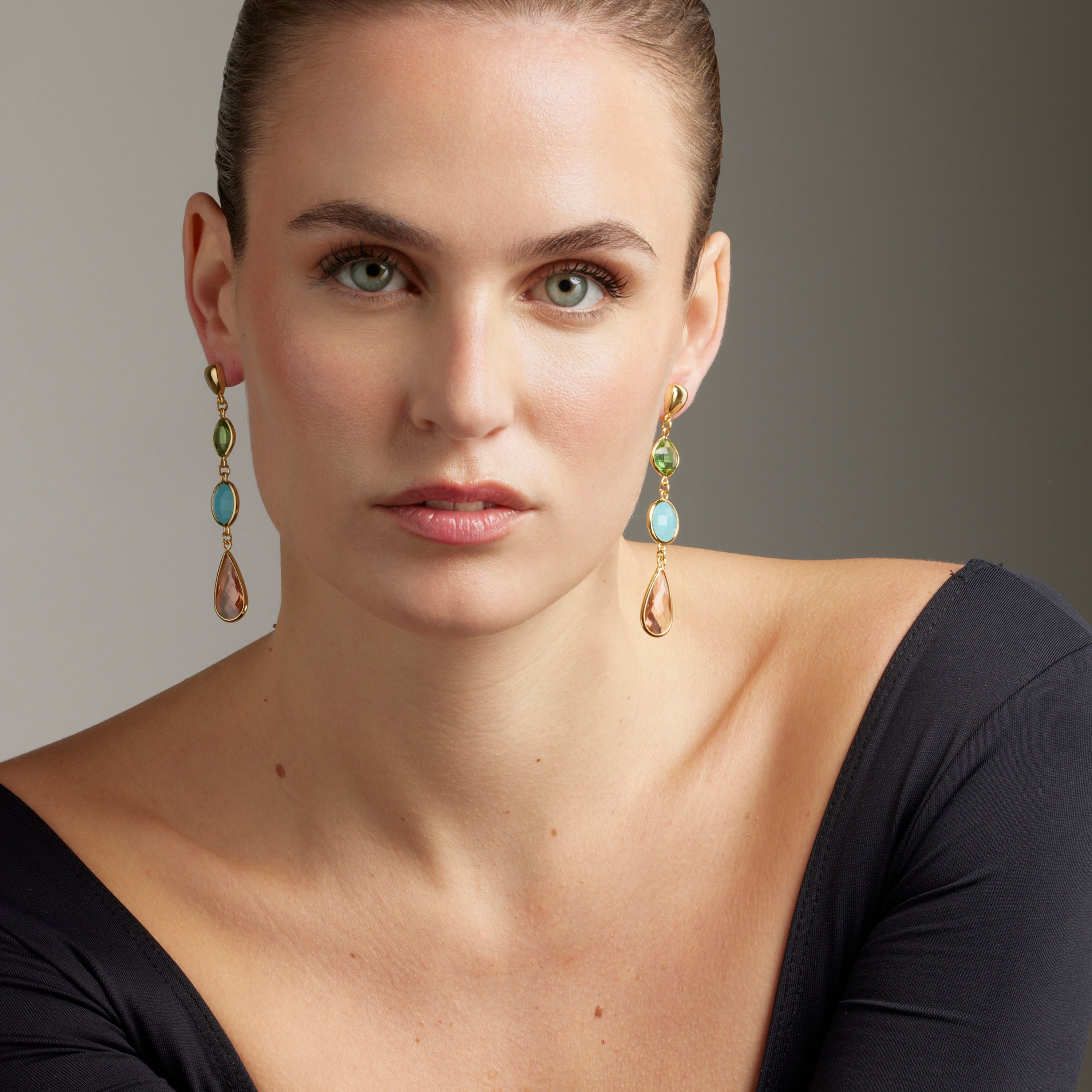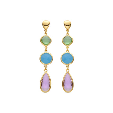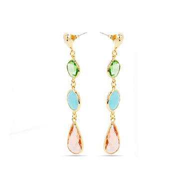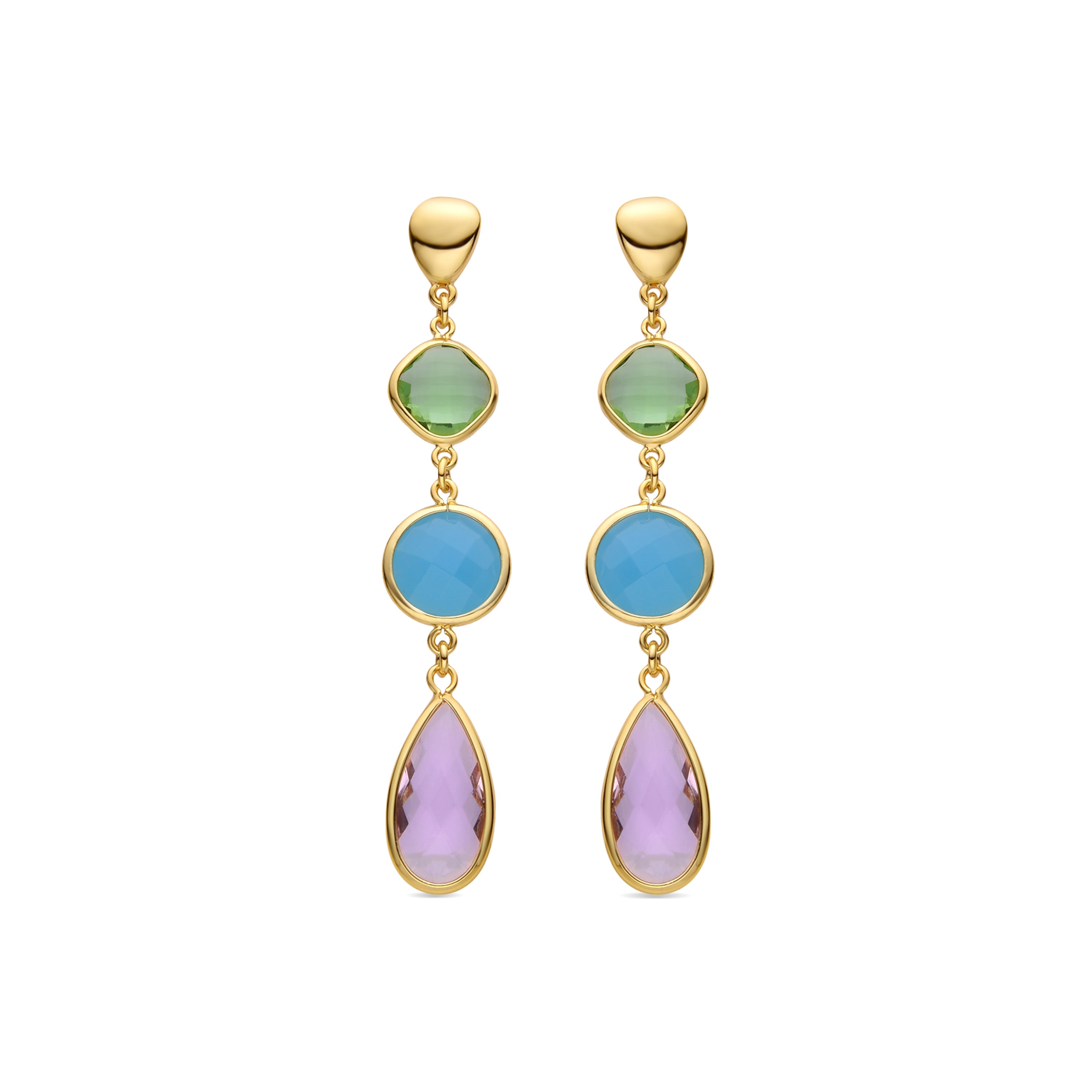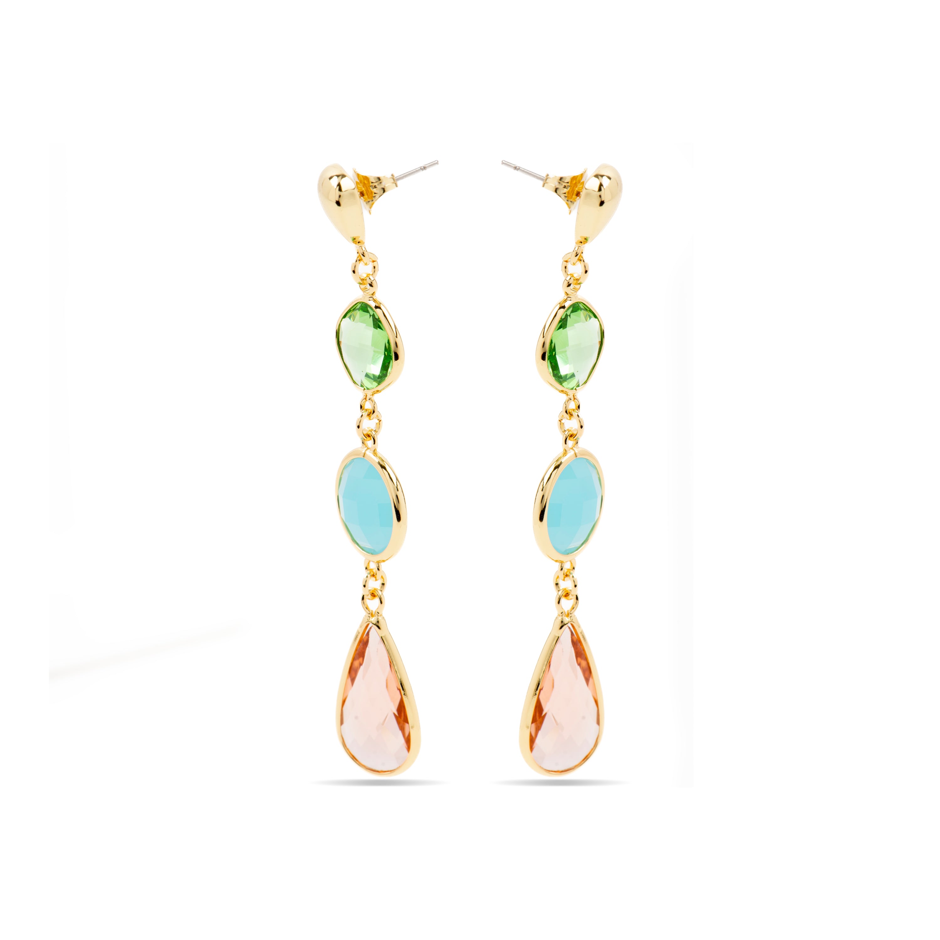 Boucles d'oreilles Donnty en cristal multicolore finition or jaune 18 carats. Afrique devient la ligne parfaite pour les femmes avec de la personnalité, qui n'ont pas peur de prendre des risques et de porter des pièces avec un caractère propre.