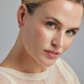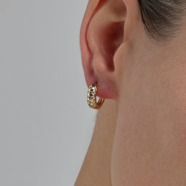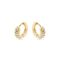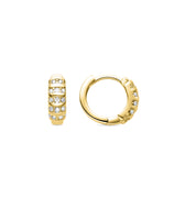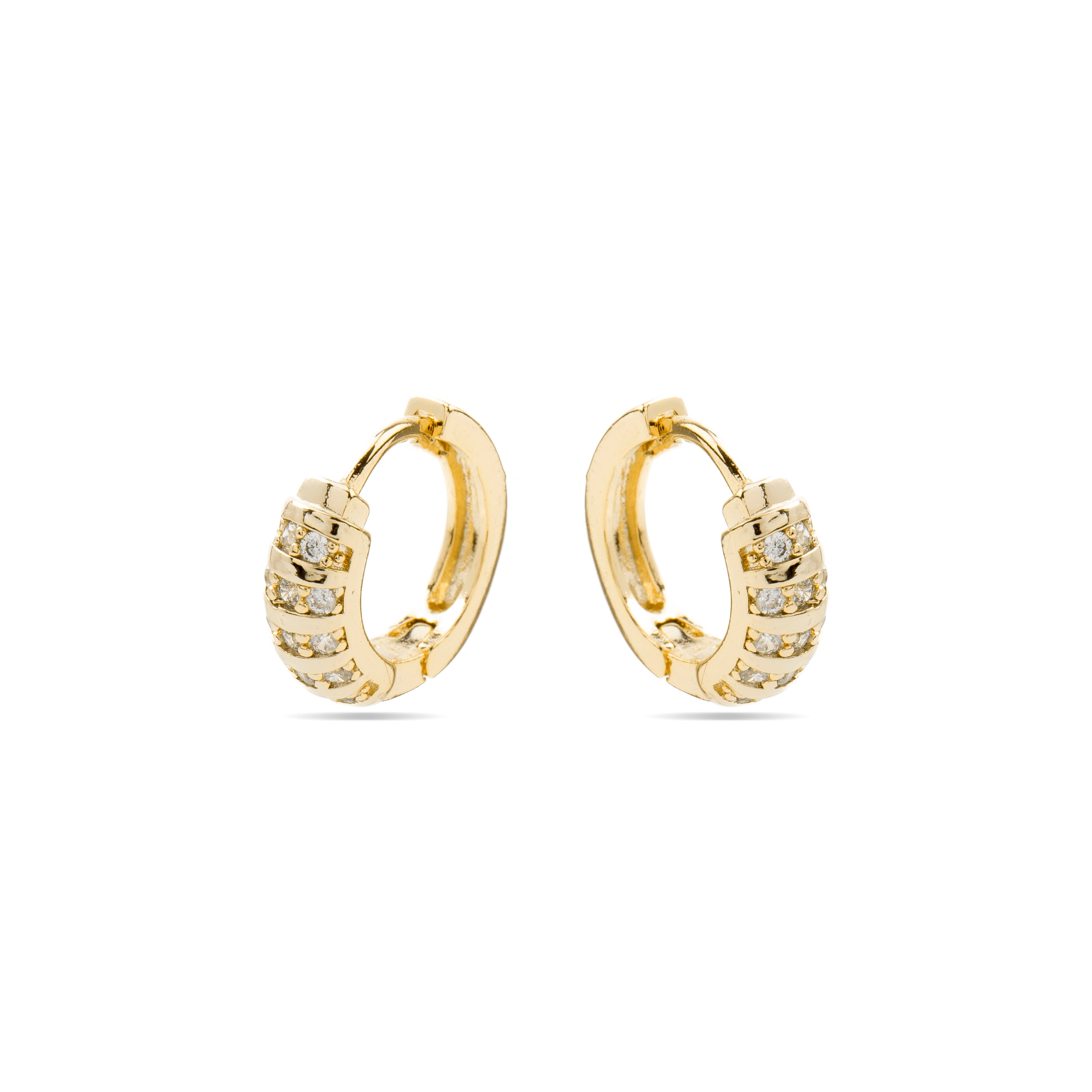 Boucles d'oreilles Linbu avec zircon brillant finition or jaune 18K. Africa Basic incarne la simplicité raffinée, des pièces intemporelles aux lignes douces et à l'éclat supplémentaire des zircons. Bijoux basiques sans prétention parfaits pour un usage quotidien, mais qui peuvent aussi convenir pour des occasions spéciales.