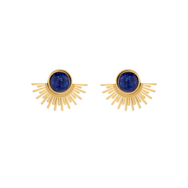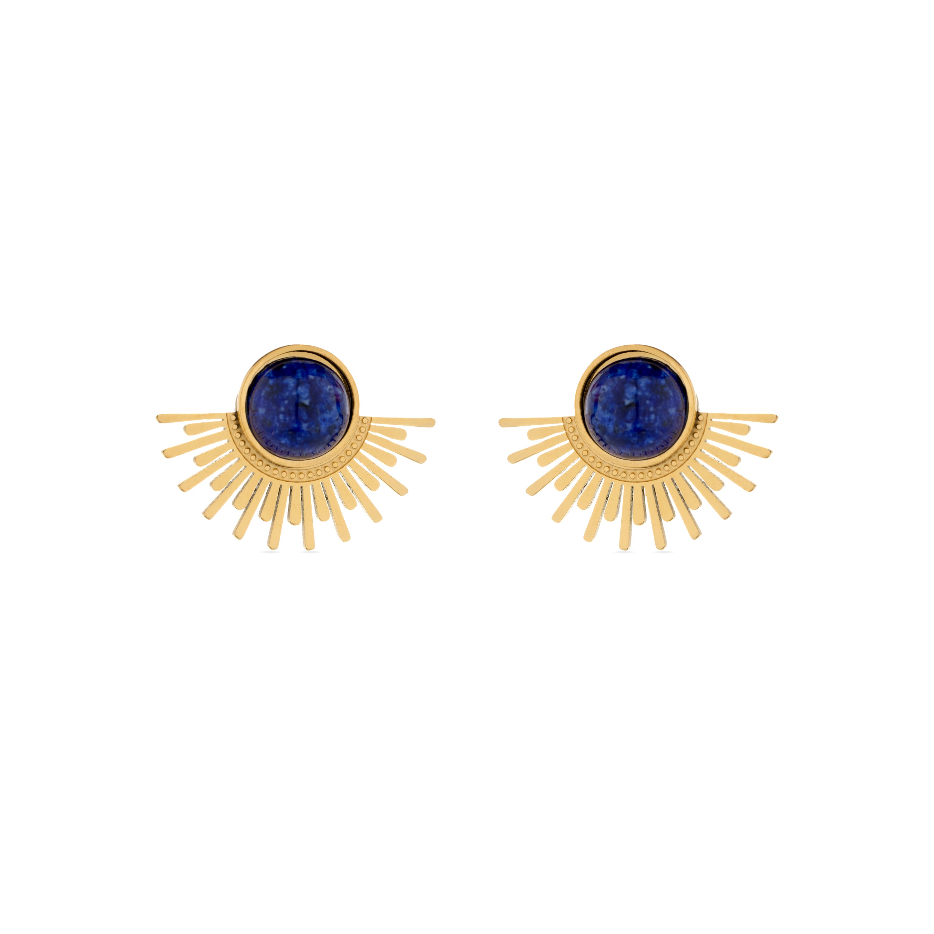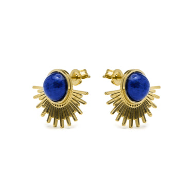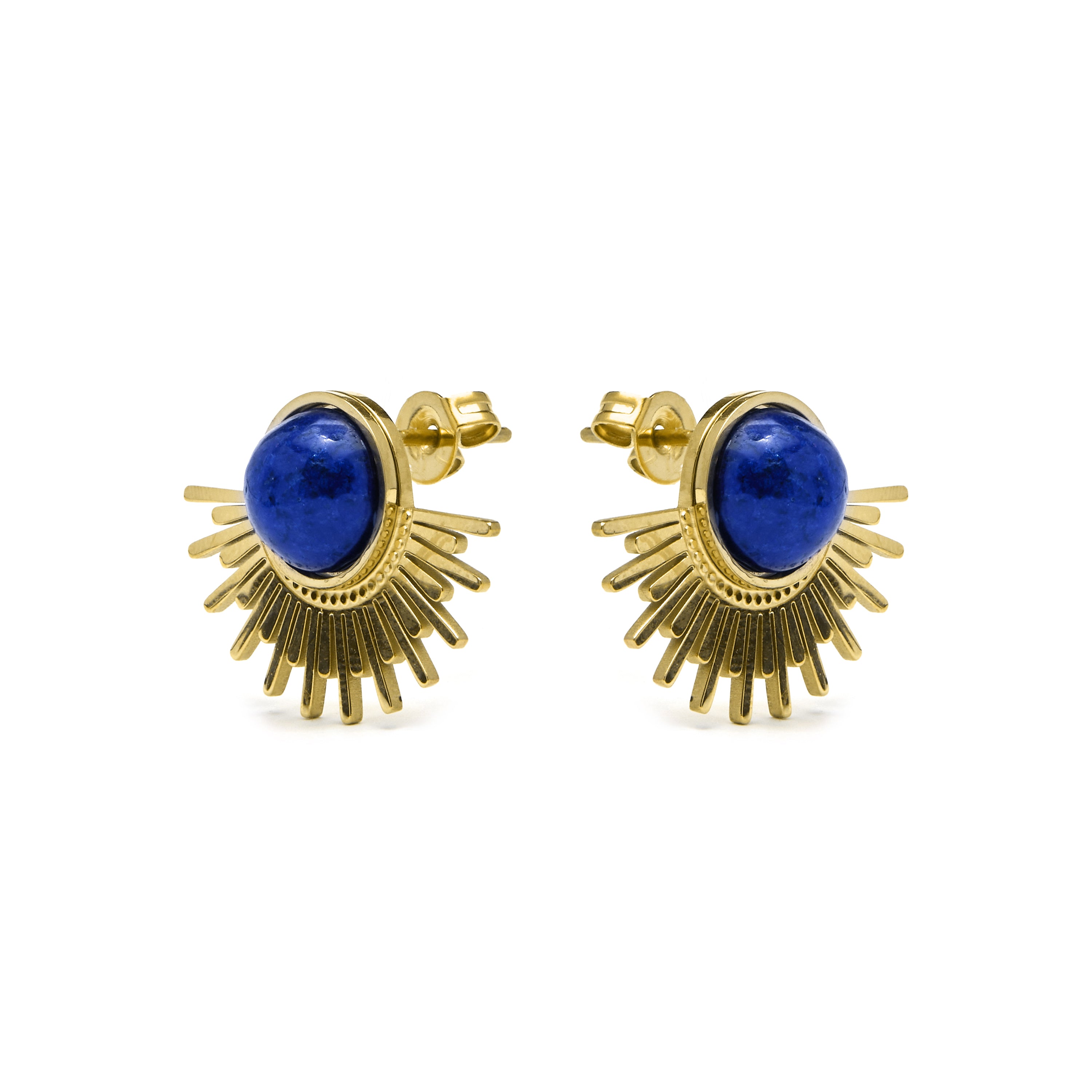 Boucles d'oreilles en acier Viwing en lapis-lazuli naturel avec finition en or jaune 18K. Afrique devient la ligne parfaite pour les femmes avec de la personnalité, qui n'ont pas peur de prendre des risques et de porter des pièces au caractère propre.