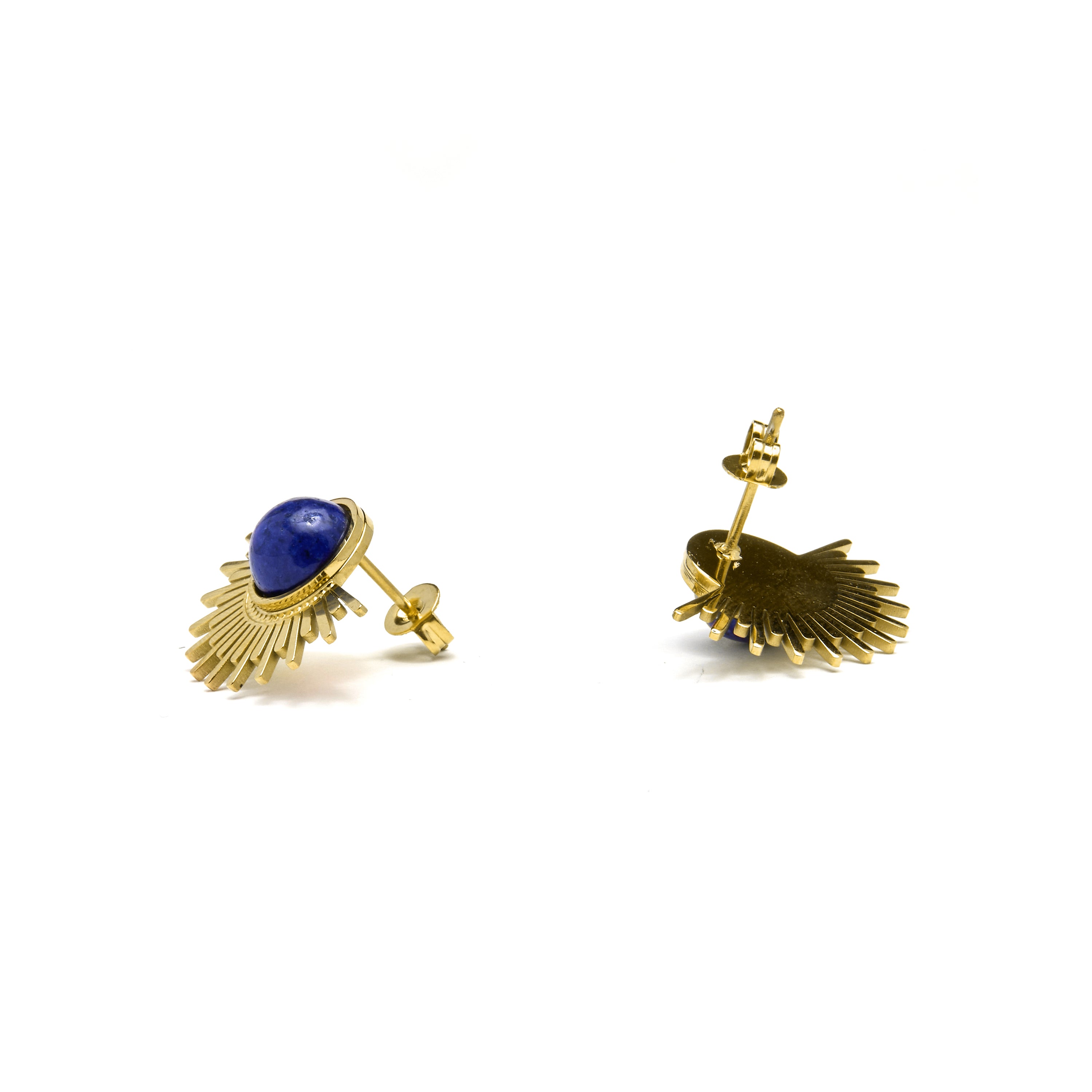Boucles d'oreilles en lapis-lazuli naturel finies en or jaune 18K - Viwing
