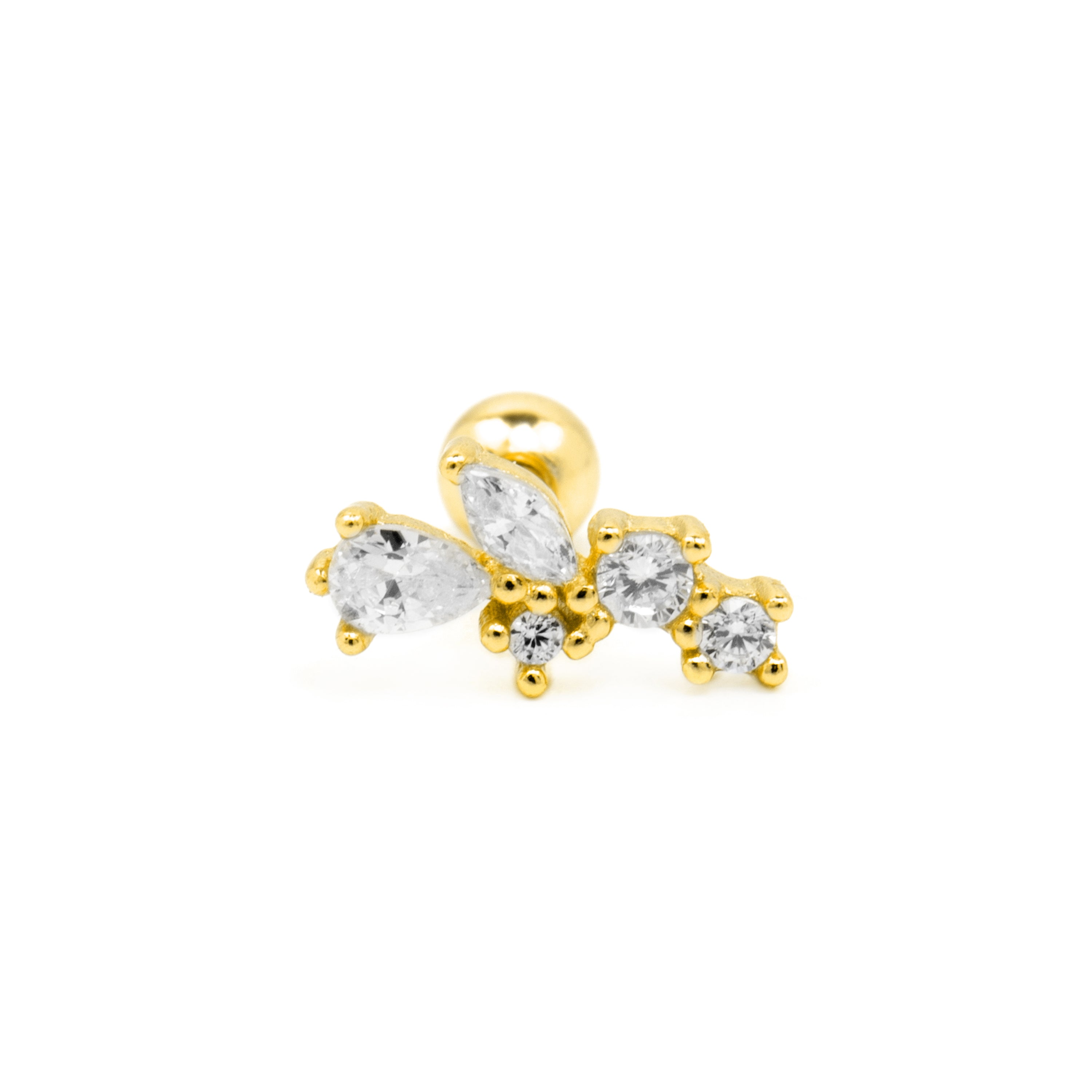 Piercing Abill en argent sterling 925 et zircone brillante finition or jaune 18k