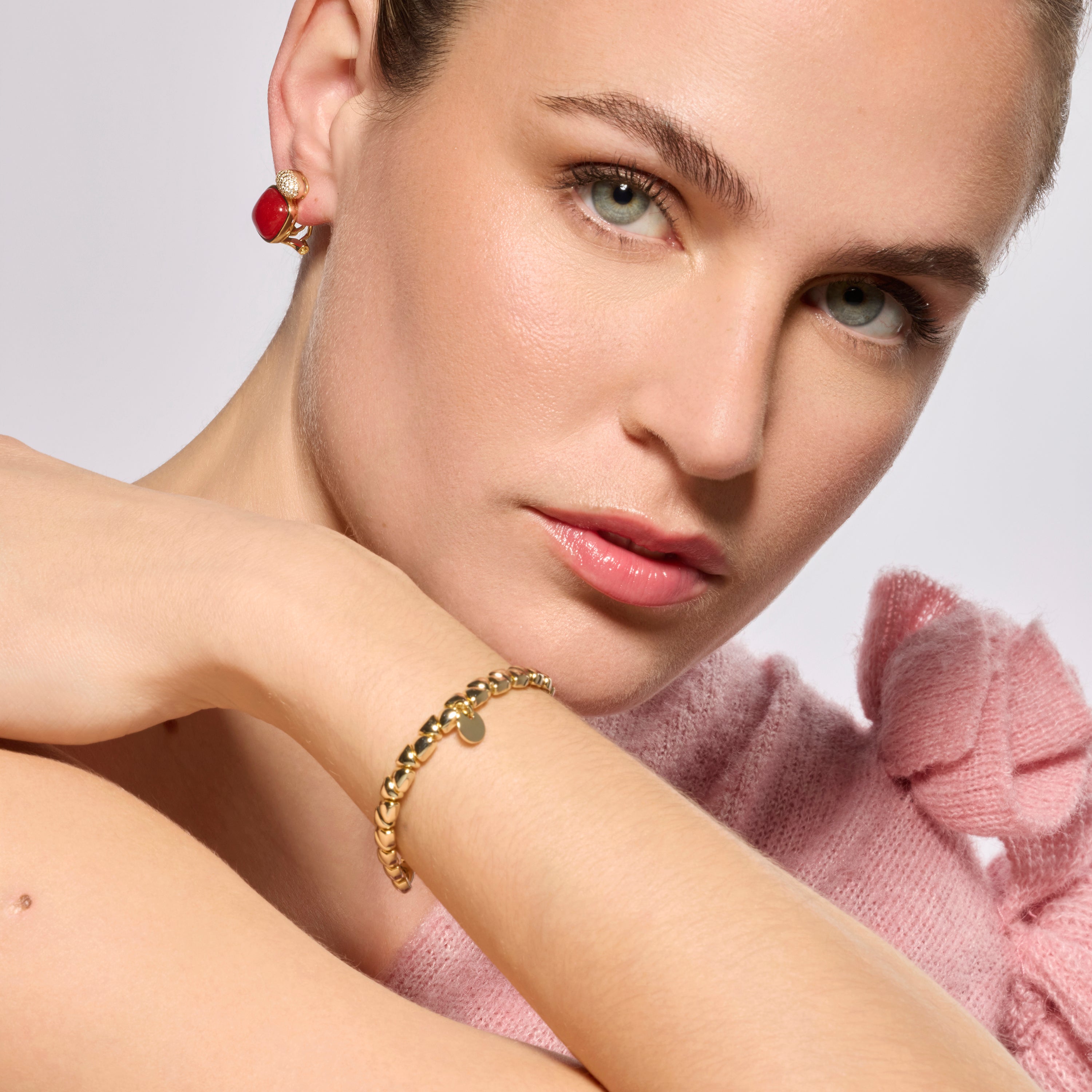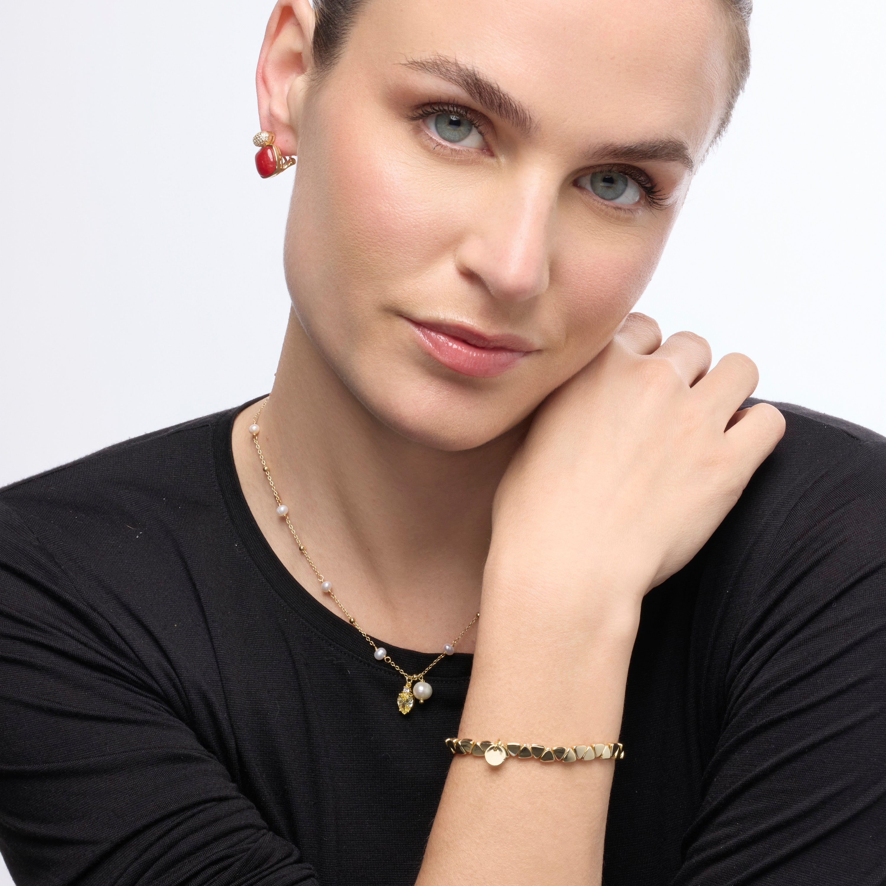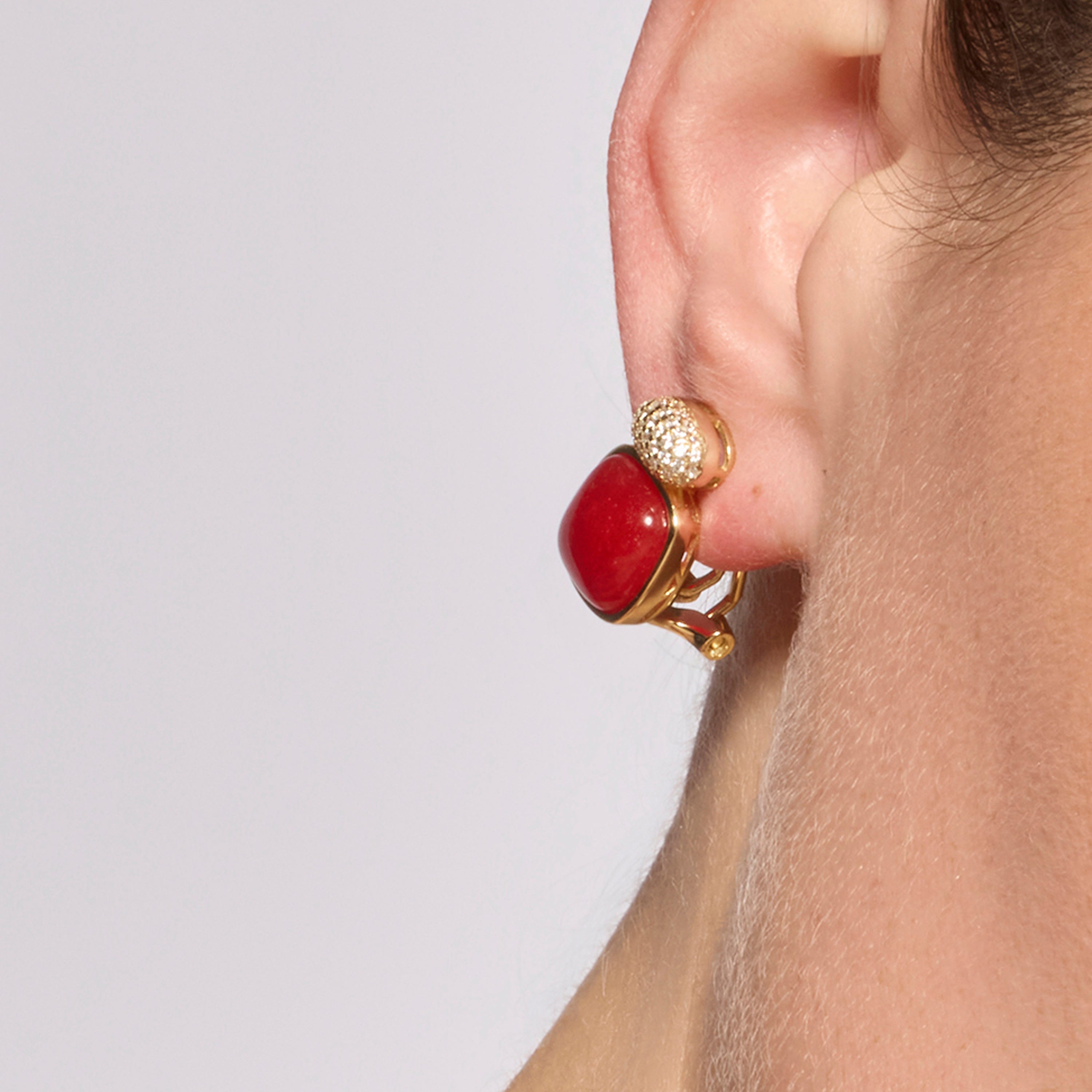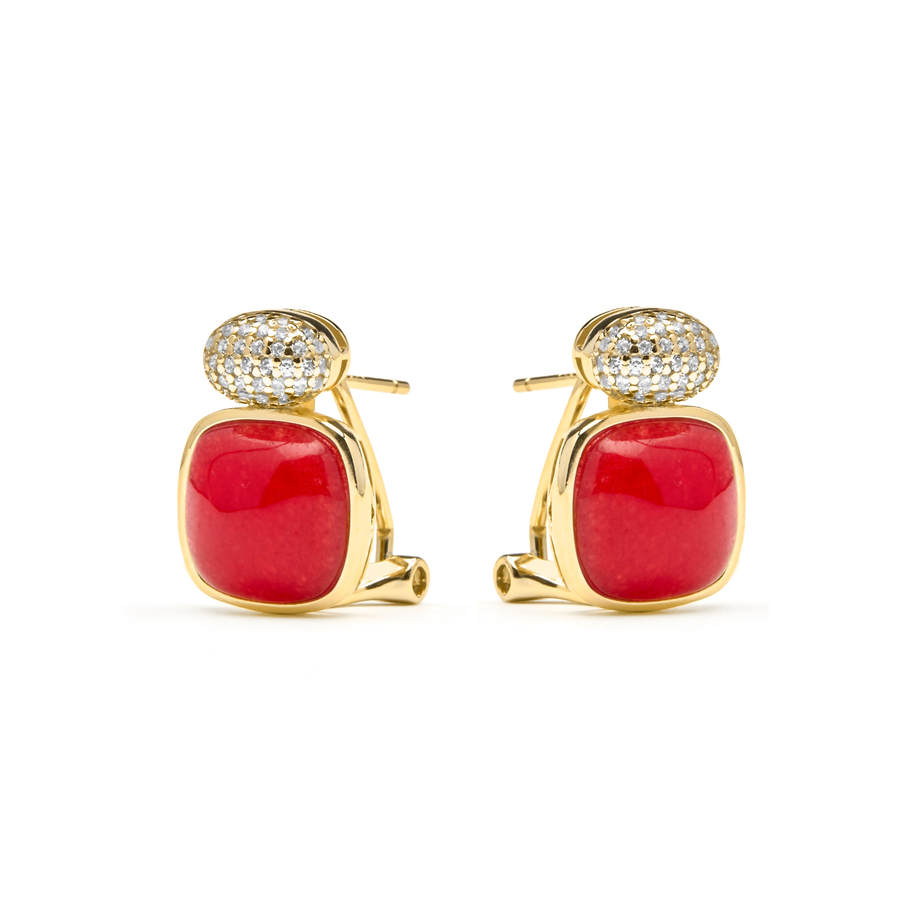 Boucles d'oreilles en argent sterling 925 et corail finition or jaune 18k - Thahi