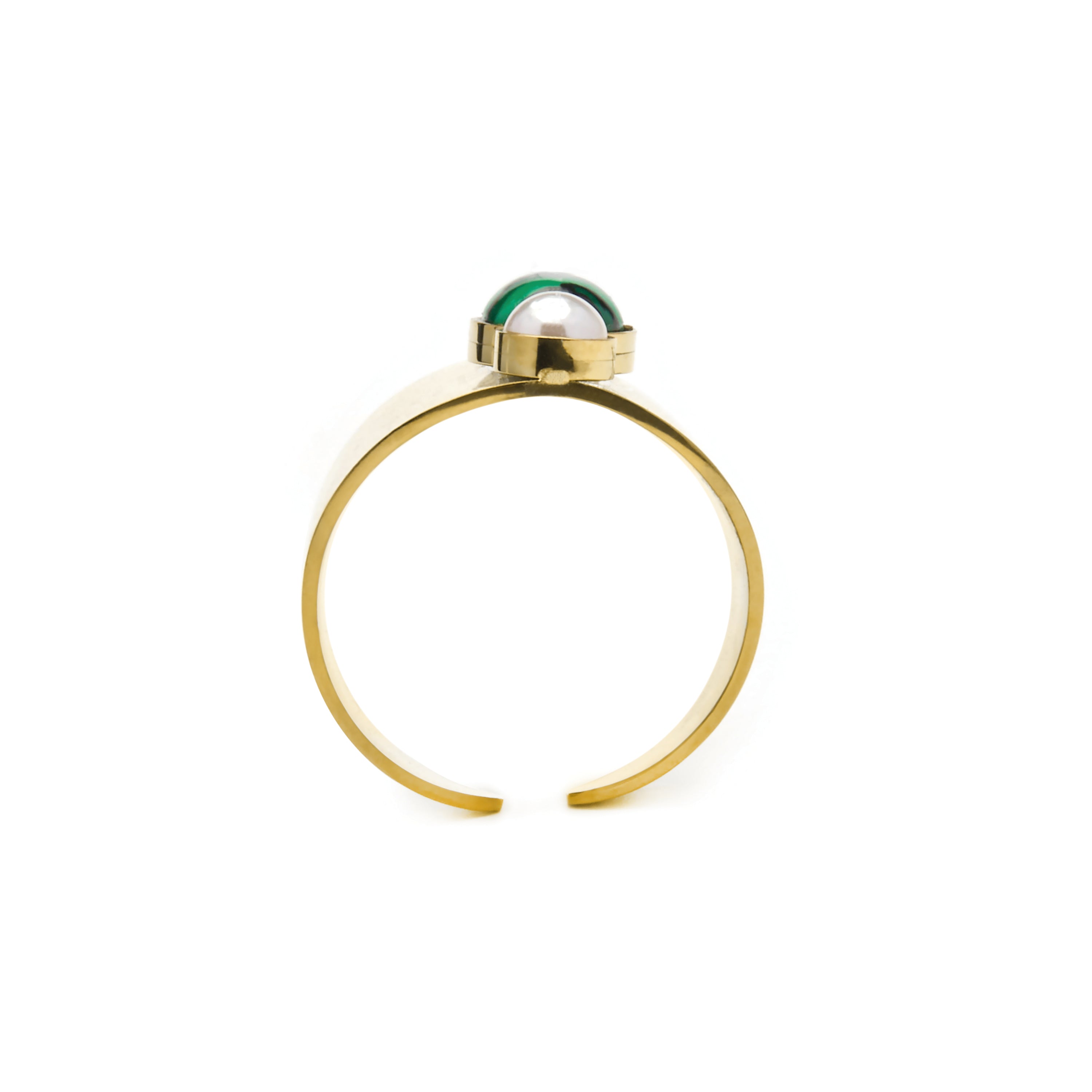 Bague finition or jaune 18 carats et Malachite - Kiak