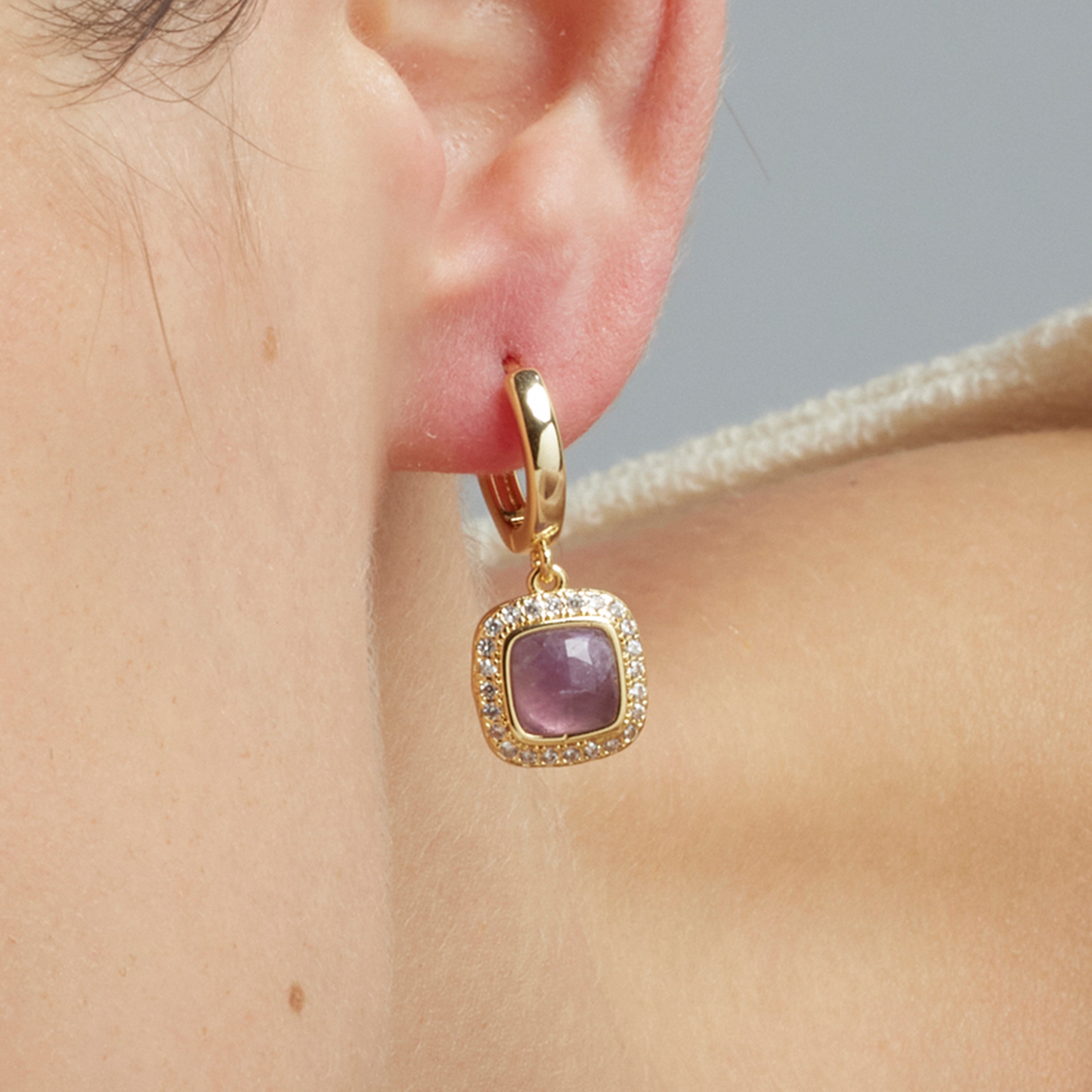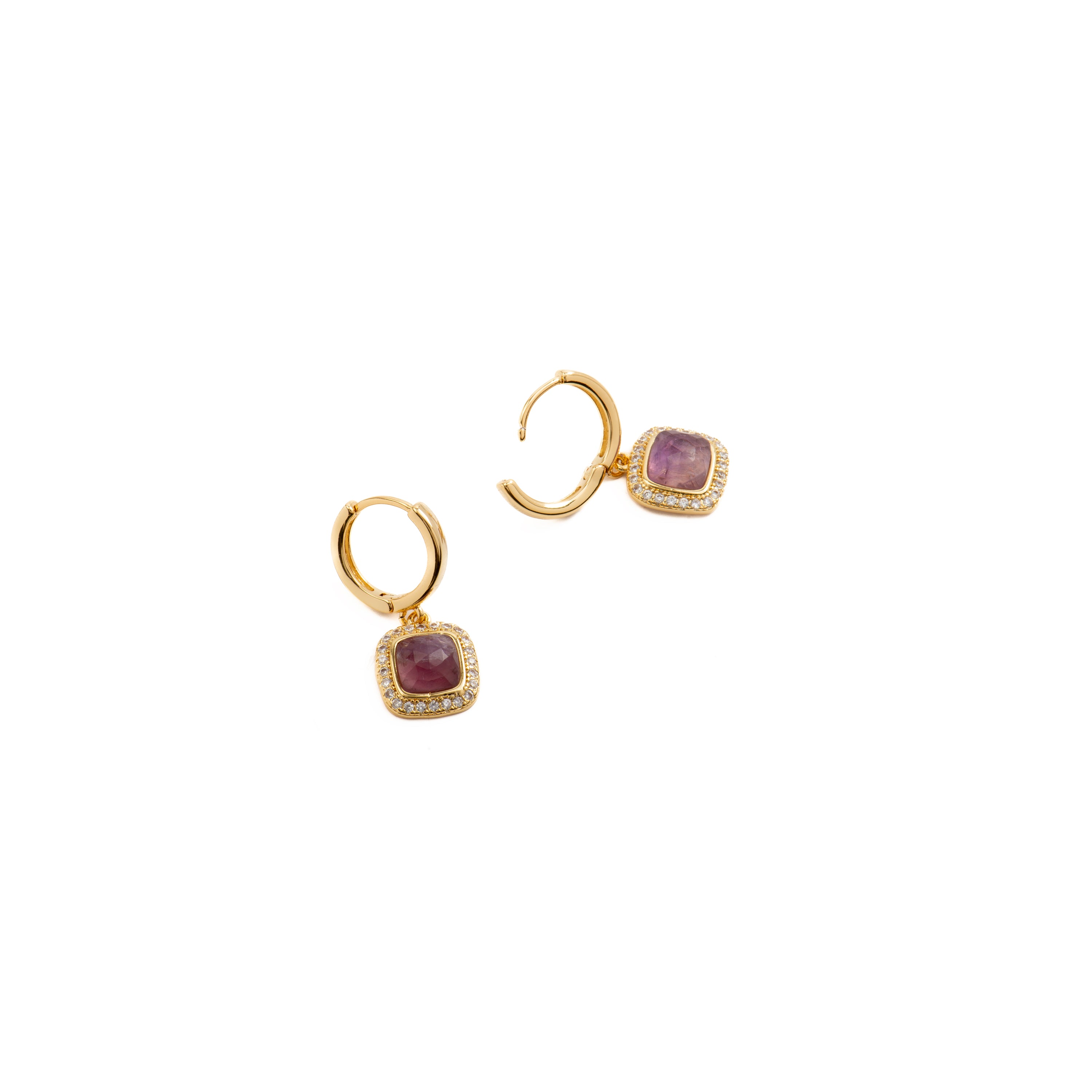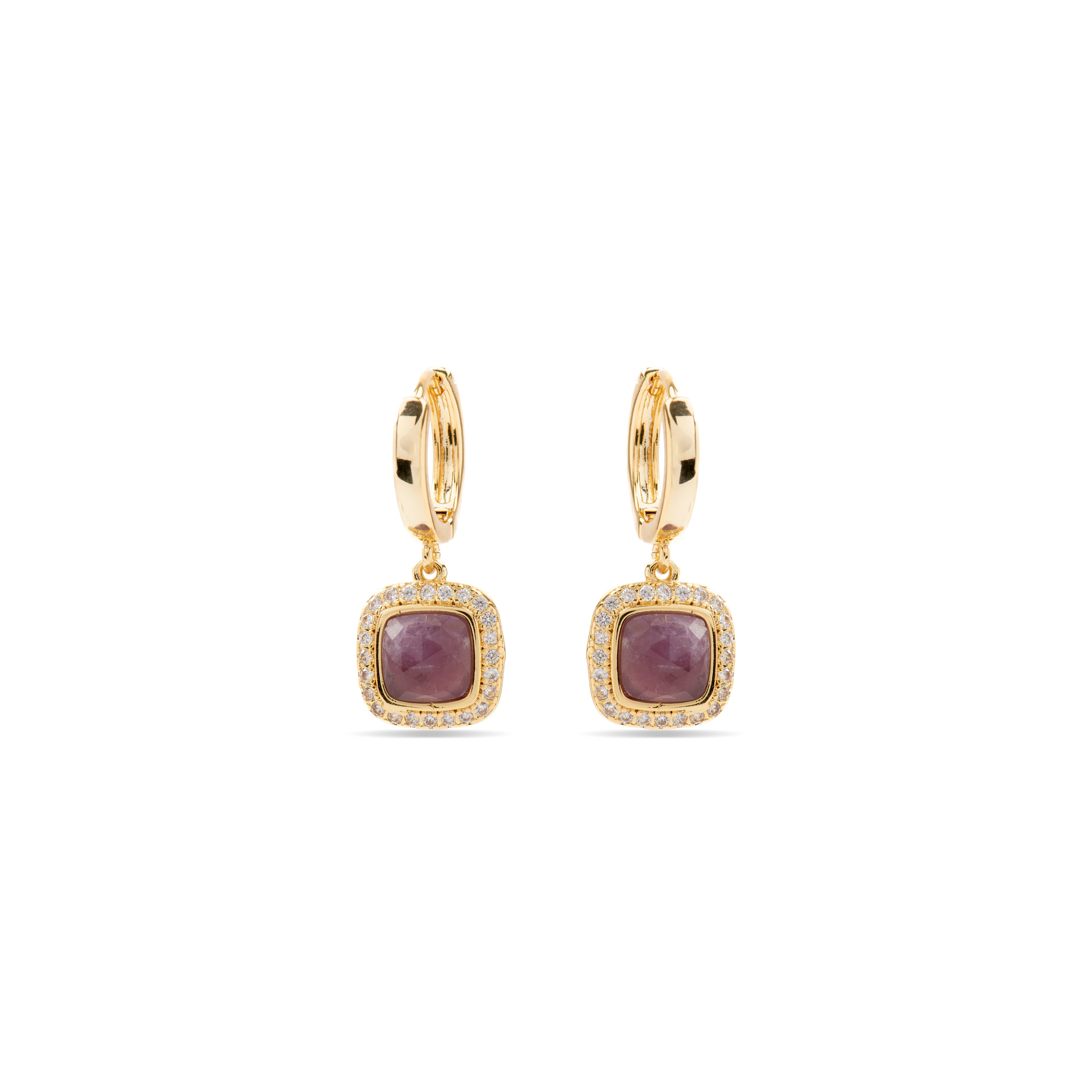 Boucles d'oreilles Liw avec cristal rose finies en or jaune 18 carats. África Basic incarne la simplicité raffinée, des pièces intemporelles aux lignes douces et à l'éclat supplémentaire des zircones. Bijoux basiques sans prétention, parfaits pour un usage quotidien, mais qui conviennent aussi aux occasions spéciales.