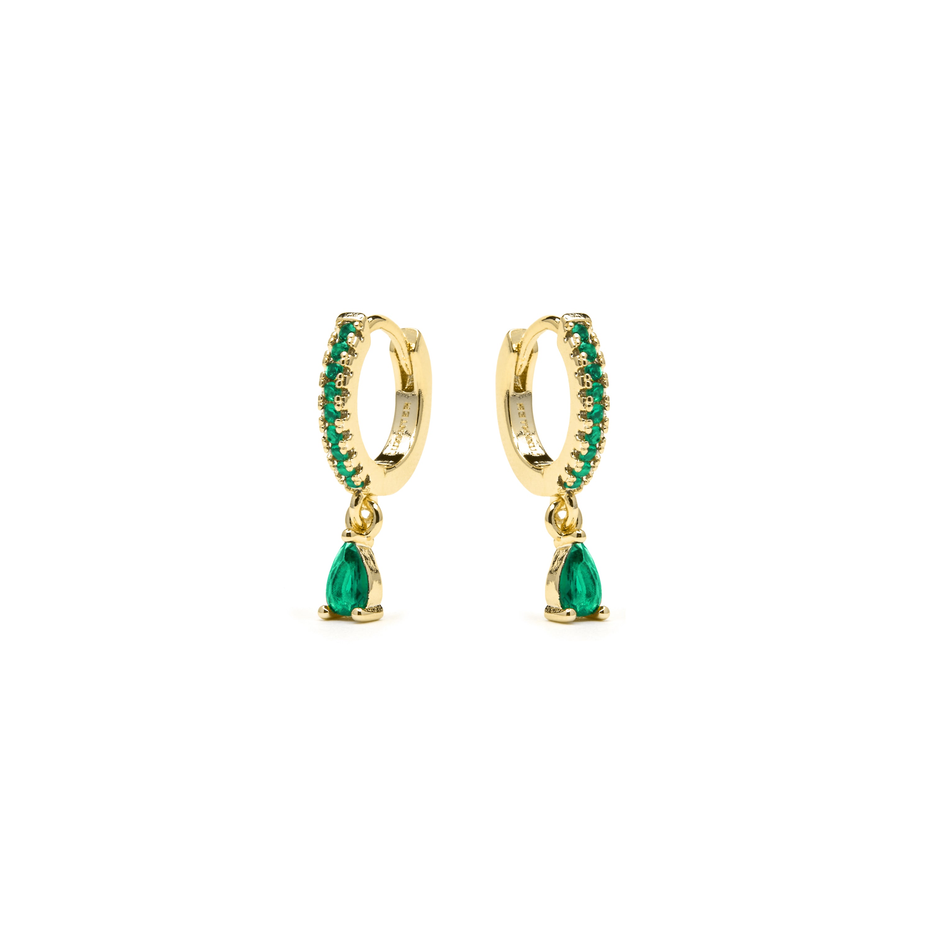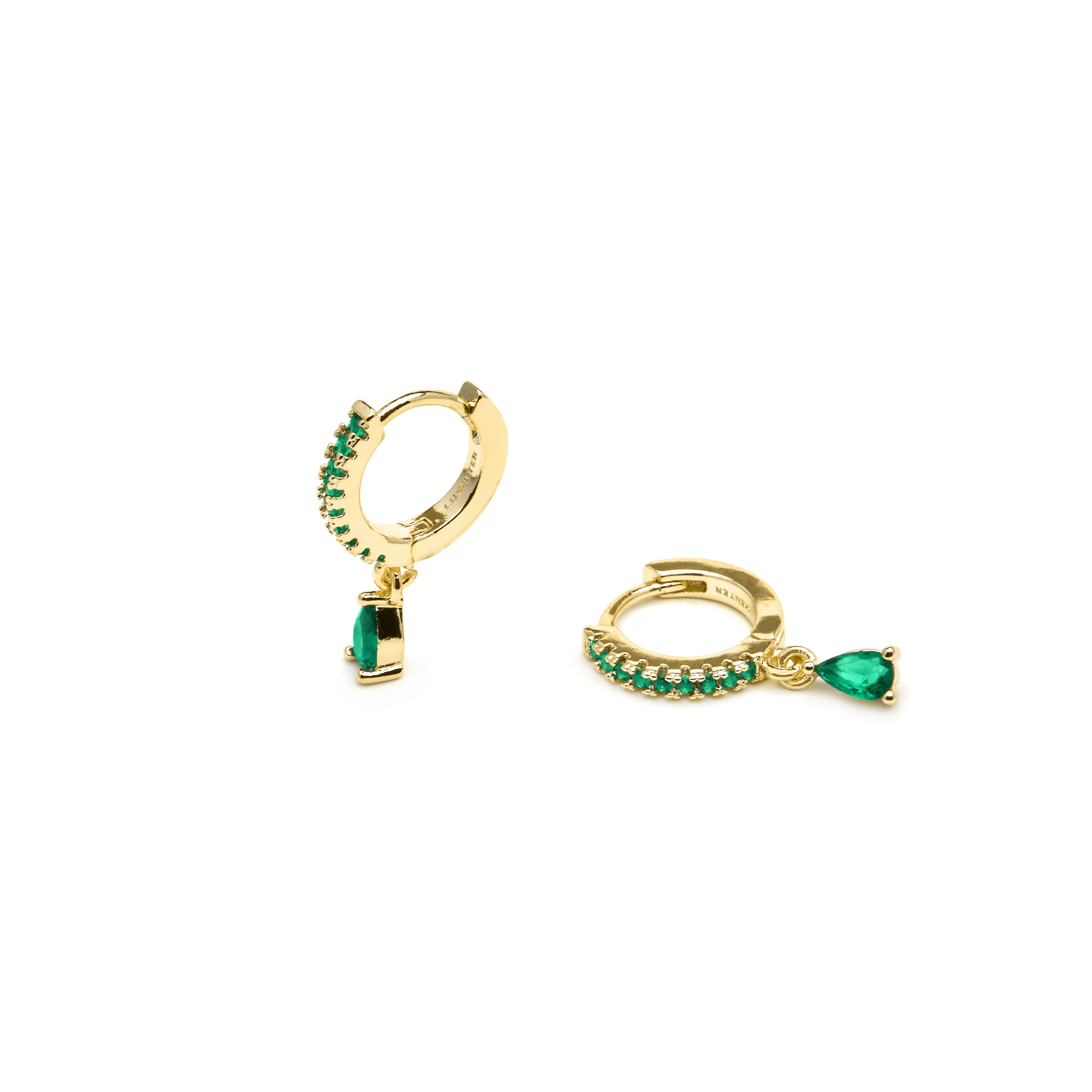 Boucles d'oreilles finition or jaune 18k et zirconium émeraude - Laade