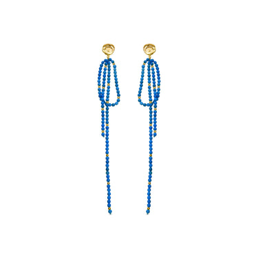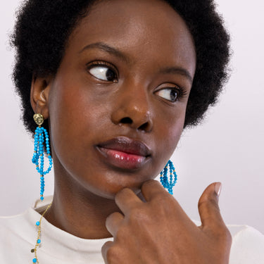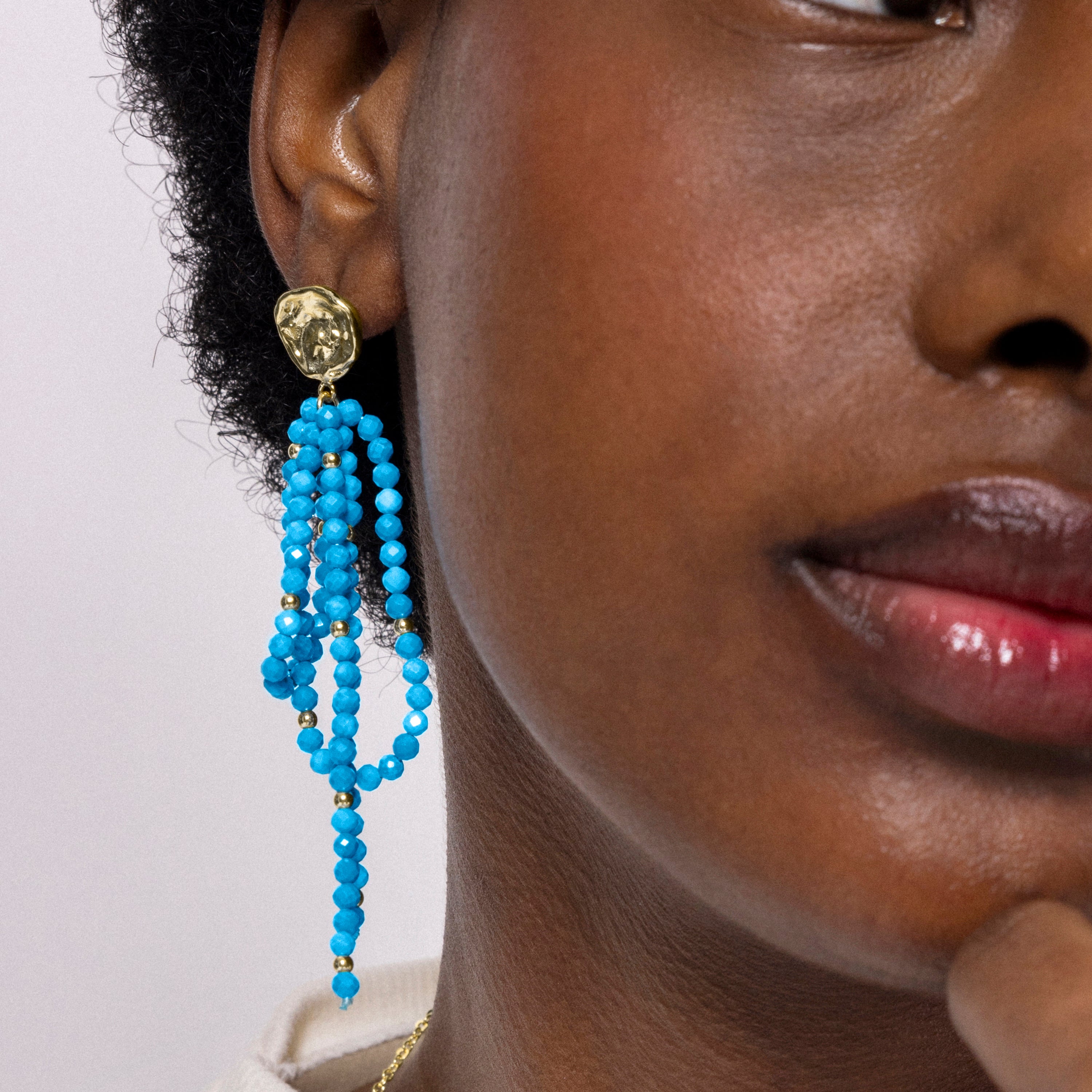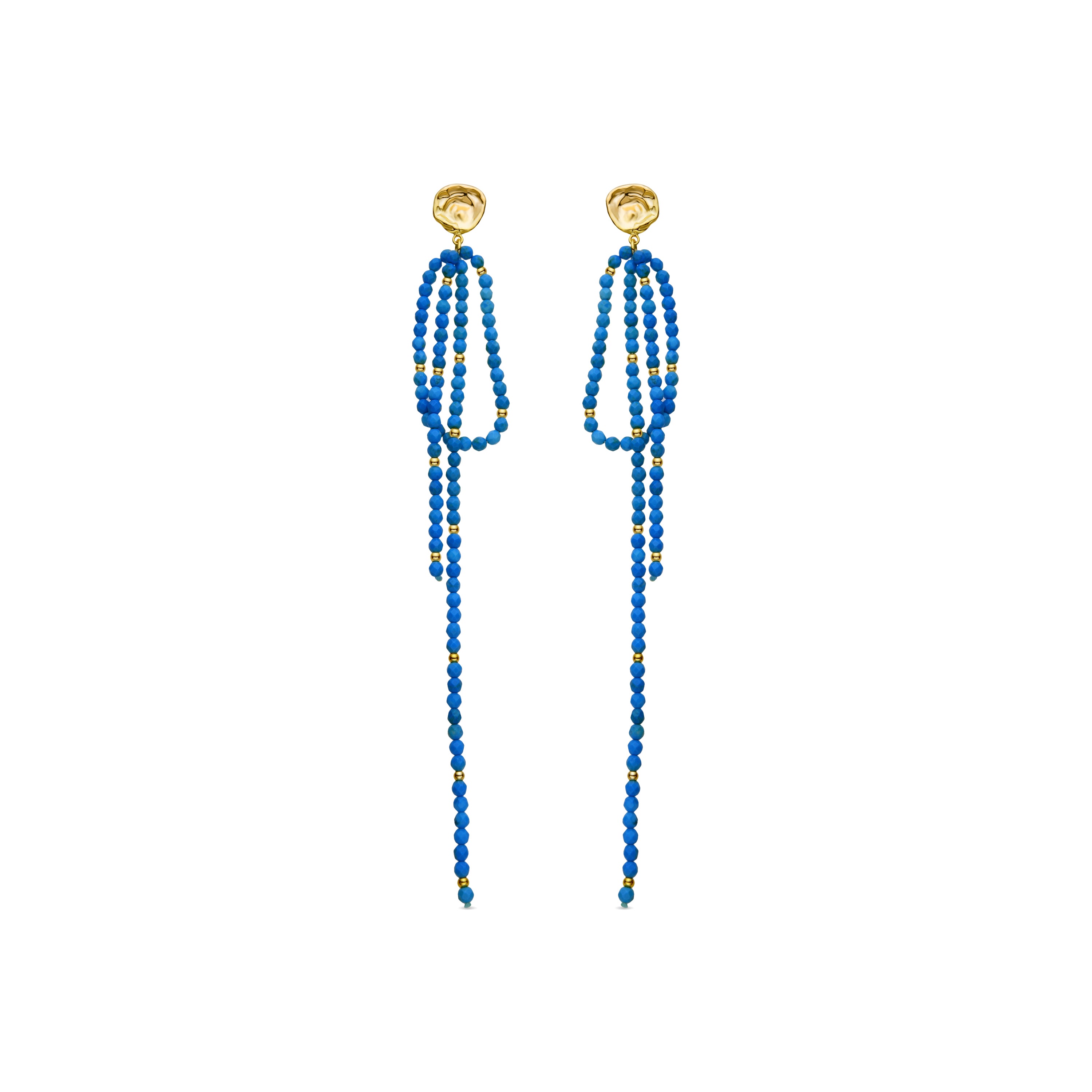 Boucles d'oreilles en métal Fawya en turquoise finition or jaune 18 carats. Le style Boho est une esthétique d'esprit libre qui mélange différentes cultures et expressions artistiques dans un style éclectique mettant l'accent sur les éléments organiques et la nature.