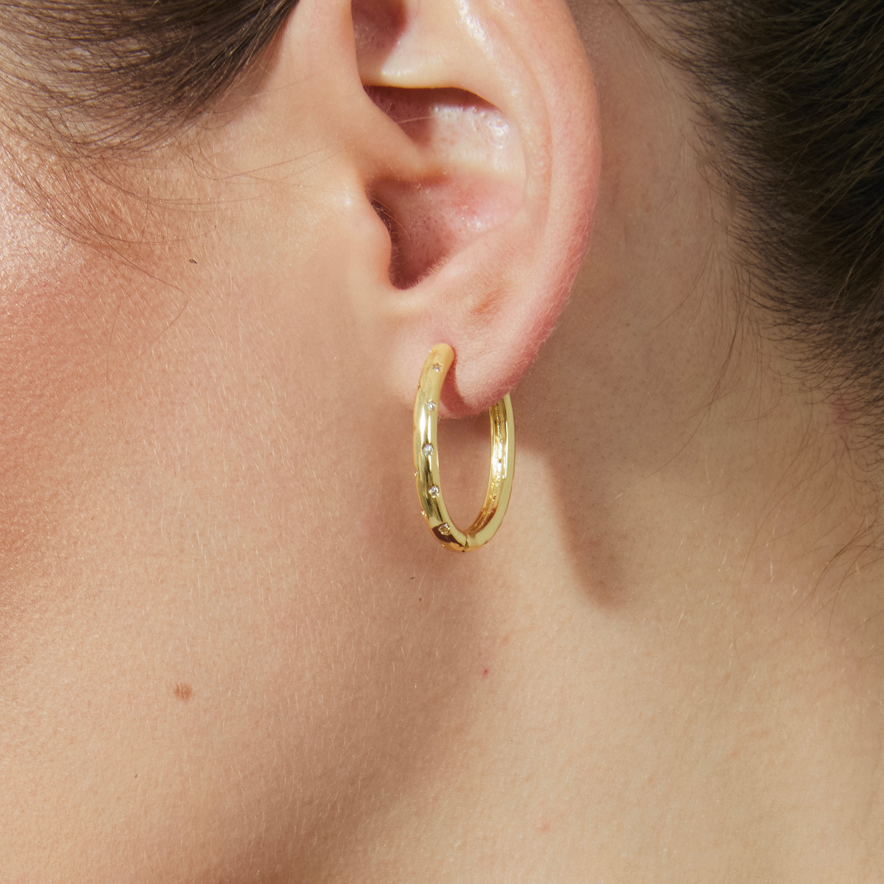Boucles d'oreilles de 18mm de diamètre avec Zircone brillante finition or 18k - Dinlah