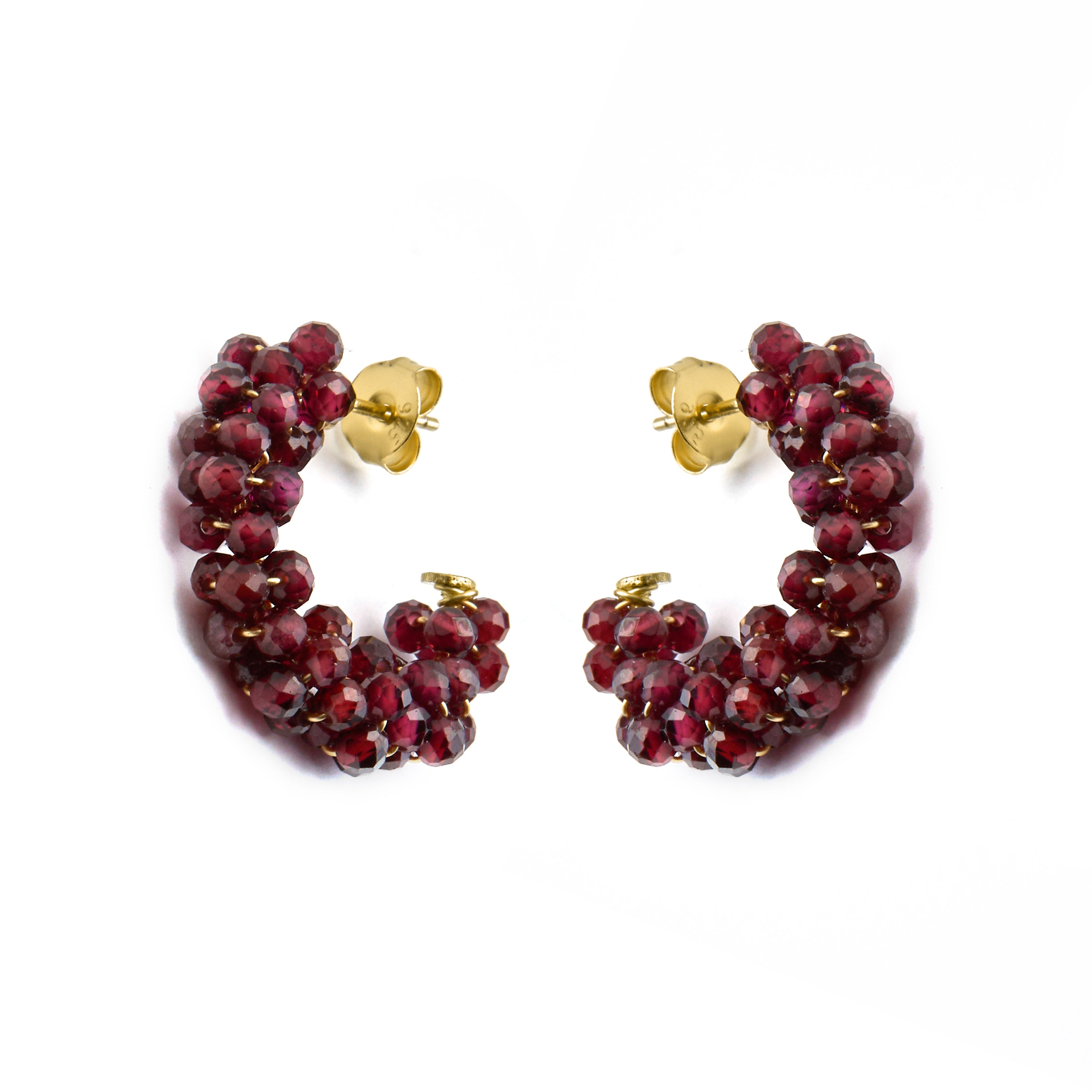 Boucles d'oreilles en argent sterling 925 et cristal grenat finition or 18k - Silka