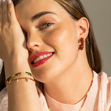Boucles d'oreilles Silka avec fermoir en argent sterling 925, fil métallique et cristal grenat finition or 18k. Pide un deseo se caractérise par des designs au caractère jeune, pleins de signification et de couleur, originaux tout en restant discrets, qui cherchent à devenir de petits amulettes.