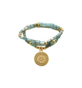 Bracelet en métal Thyu avec cristal bleu finition or 18k. Le style Boho est une esthétique d'esprit libre qui mélange différentes cultures et expressions artistiques dans un style éclectique mettant l'accent sur les éléments organiques et la nature.
