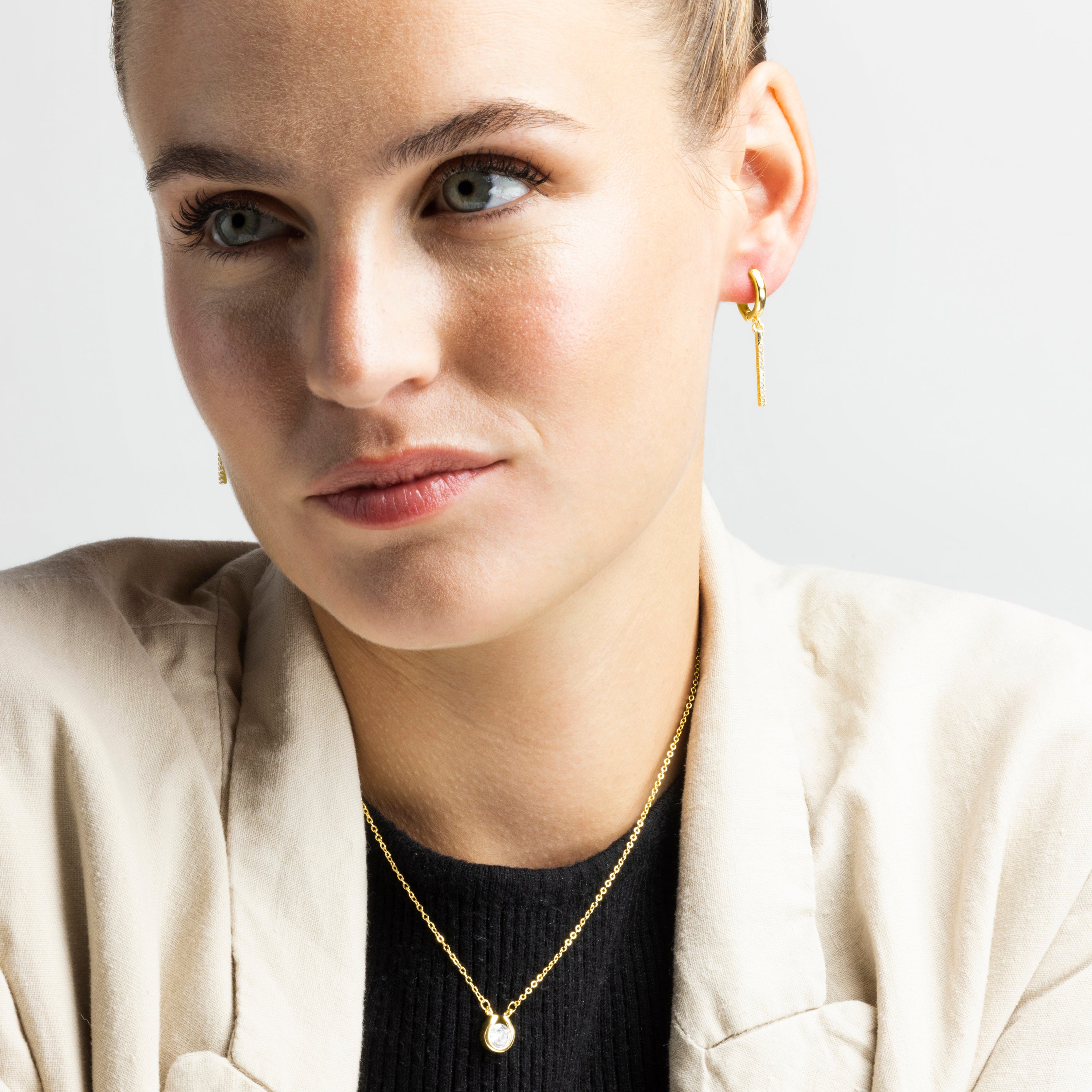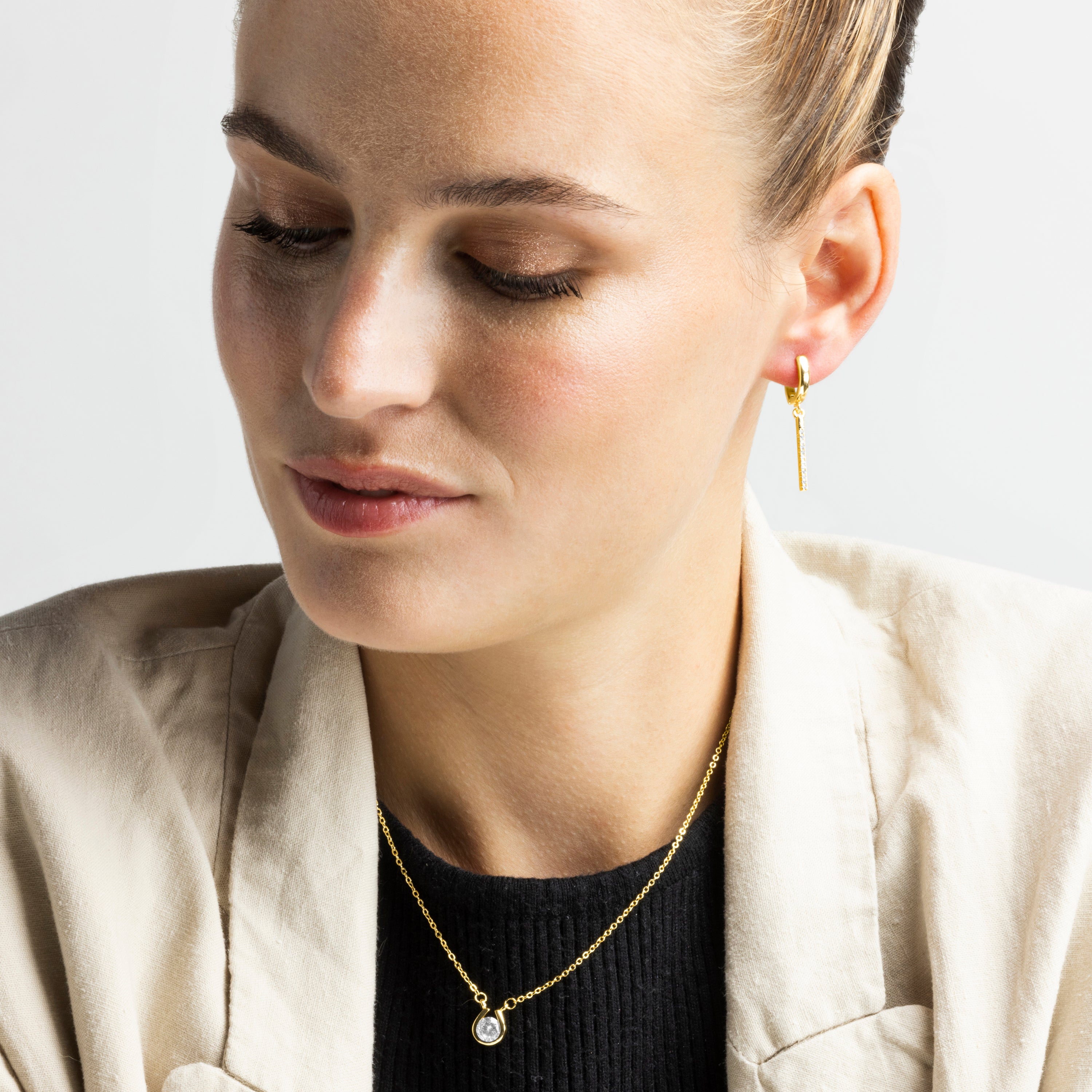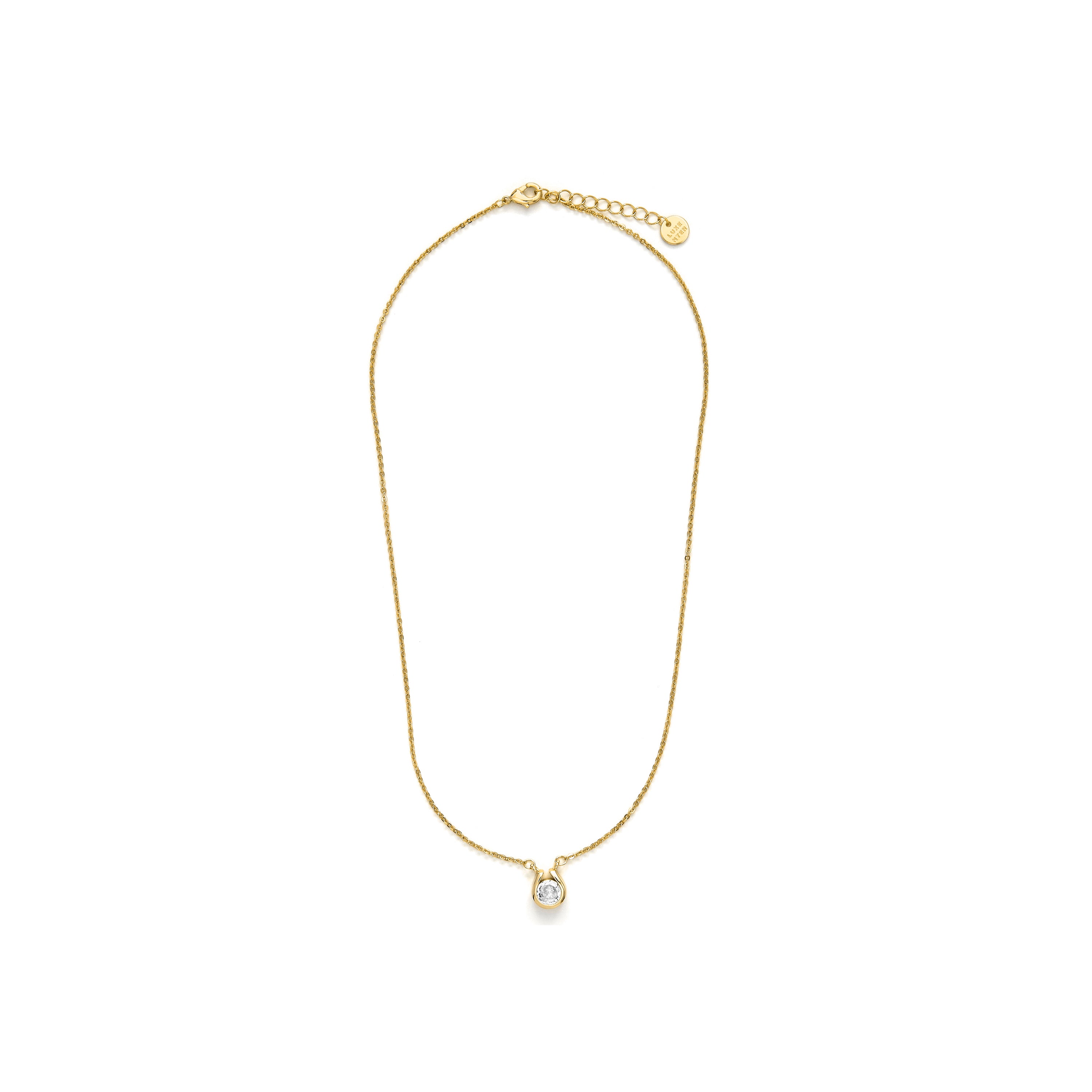 Collier Ceol en oxyde de zirconium brillant finition or jaune 18 carats. África Basic incarne la simplicité raffinée, des pièces intemporelles aux lignes douces et à l'éclat supplémentaire des oxydes de zirconium. Des bijoux basiques sans prétention, parfaits pour un usage quotidien, mais qui peuvent aussi convenir pour des occasions spéciales.