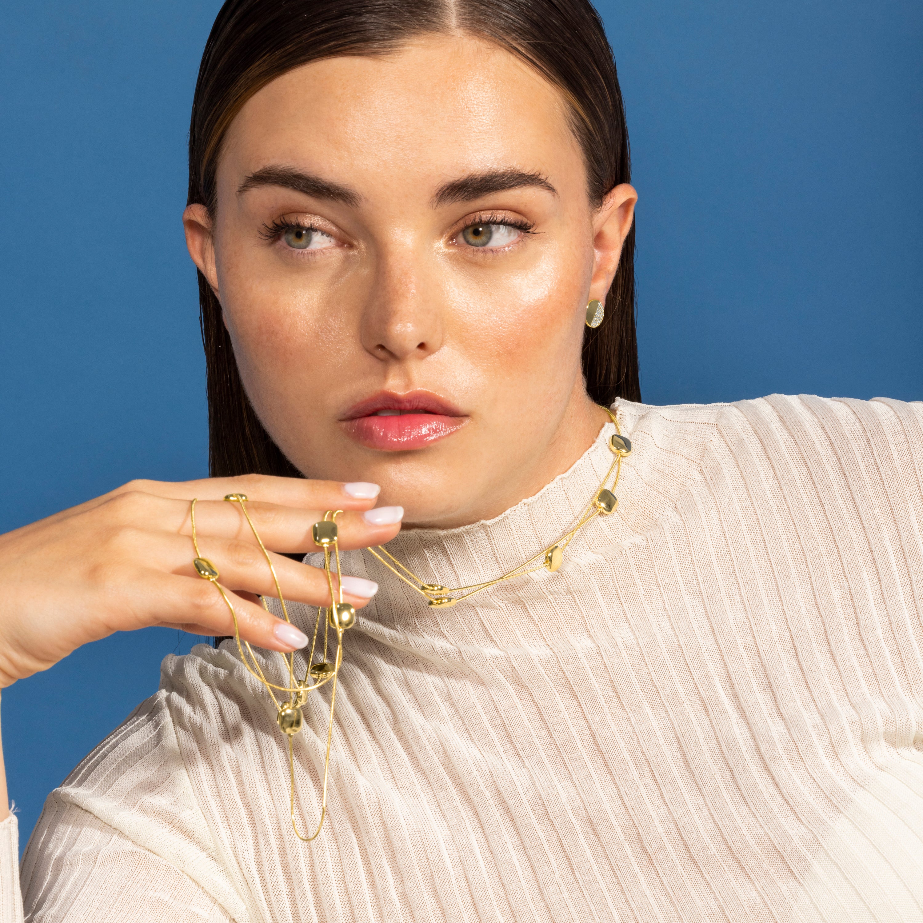 Collier Tislain en perle blanche avec finition en or jaune 18K. Afrique devient la ligne parfaite pour les femmes avec de la personnalité, qui n'ont pas peur de prendre des risques et de porter des pièces au caractère propre.
