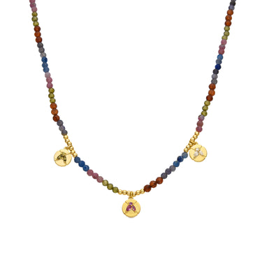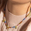 Collier Ufore à fermeture en argent sterling 925, perles en métal et cristal multicolore finition or 18k. Pide un deseo se caractérise par des designs au caractère jeune, pleins de sens et de couleur, originaux tout en restant discrets, qui cherchent à devenir de petits amulettes.