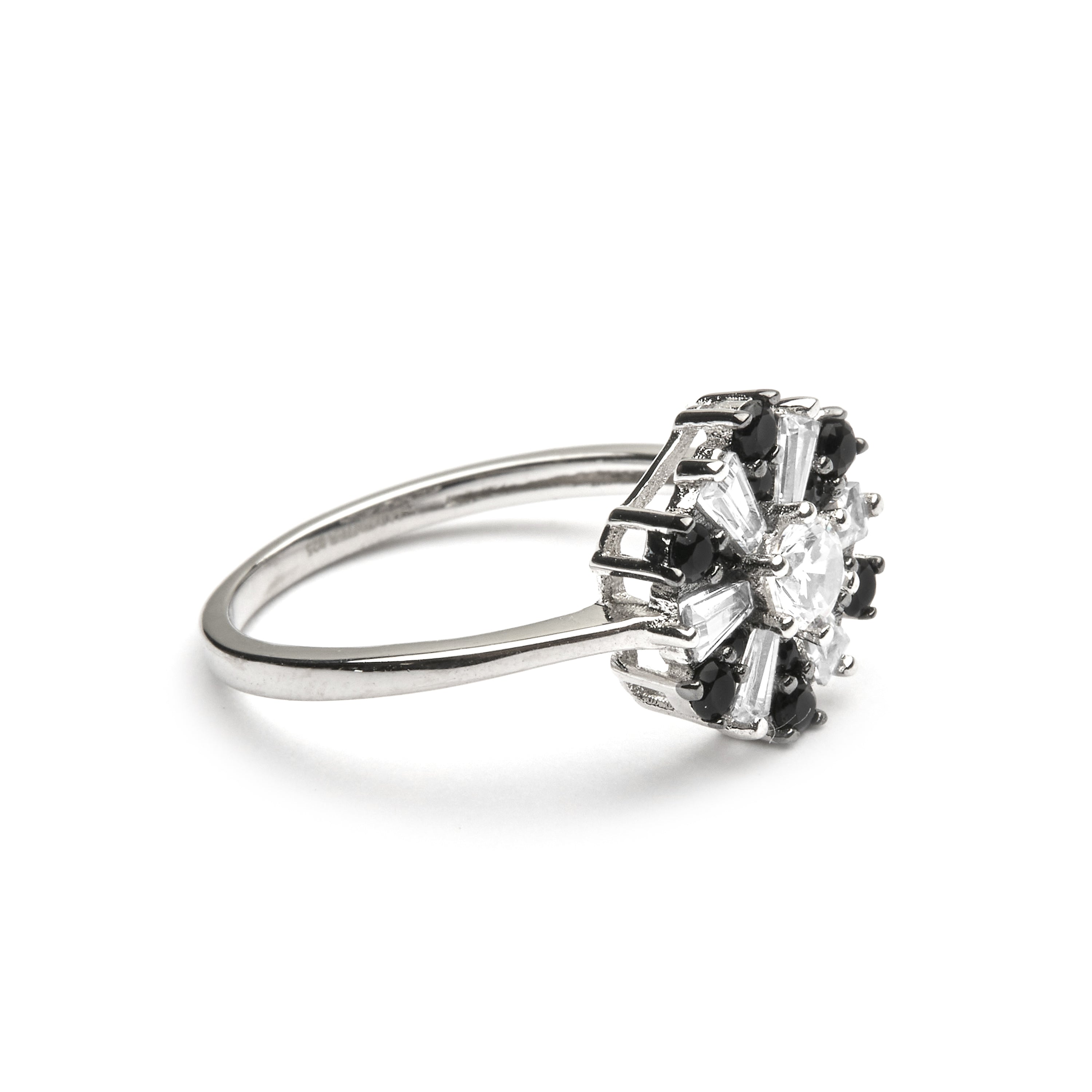 Bague en argent sterling 925 et oxyde de zirconium onyx finition rhodium - Lorush