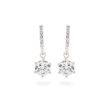 Boucles d'oreilles essentielles en argent sterling 925 et zircon brillant avec finition en rhodium. Moments pour briller combine parfaitement des designs intemporels avec des bijoux plus innovants. Bijoux élégants et sophistiqués pour briller lors d'occasions spéciales.