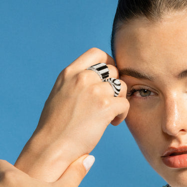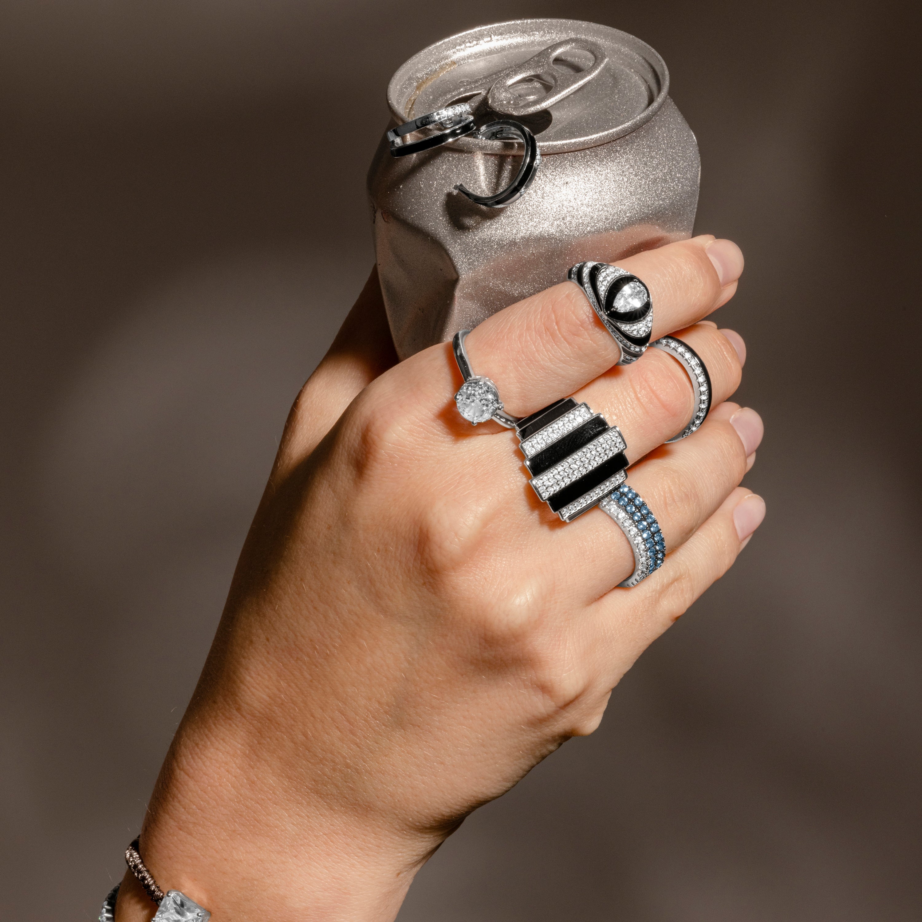 Bague en argent sterling 925 et oxyde de zirconium onyx finition rhodiée - Darkbe