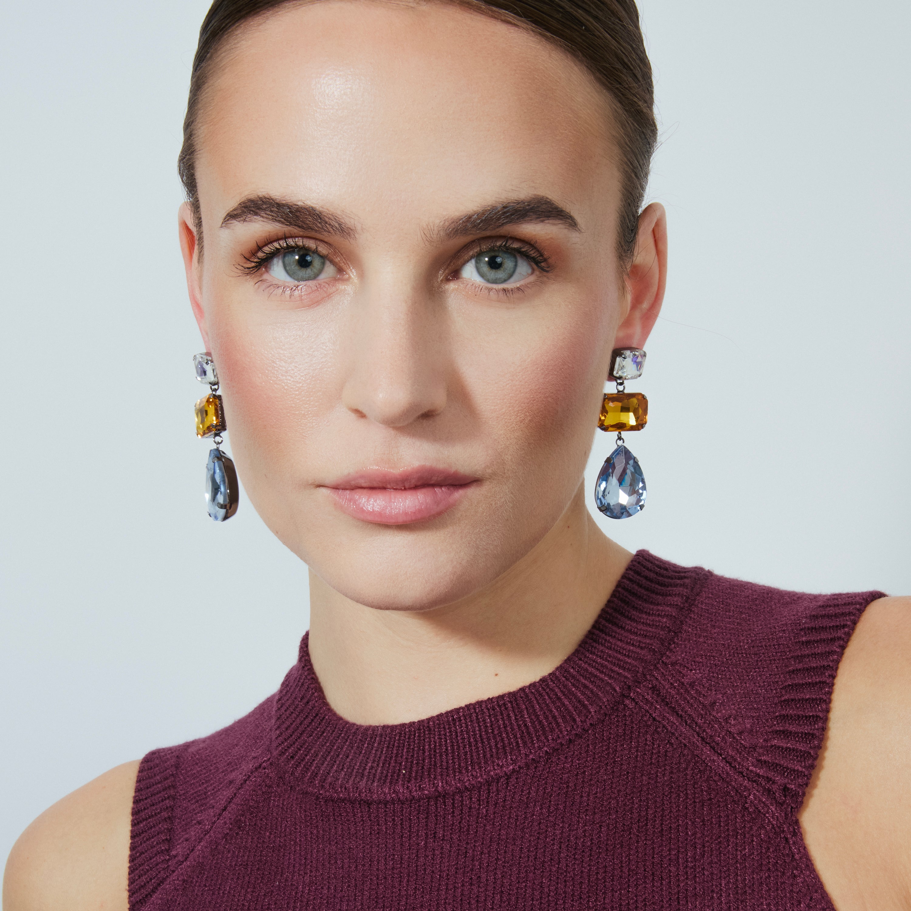 Boucles d'oreilles en cristal bleu finition or jaune 18K - Ifar