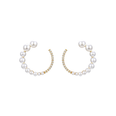 Boucles d'oreilles en argent sterling 925 avec perle blanche, finies en or jaune 18K - Rymoth