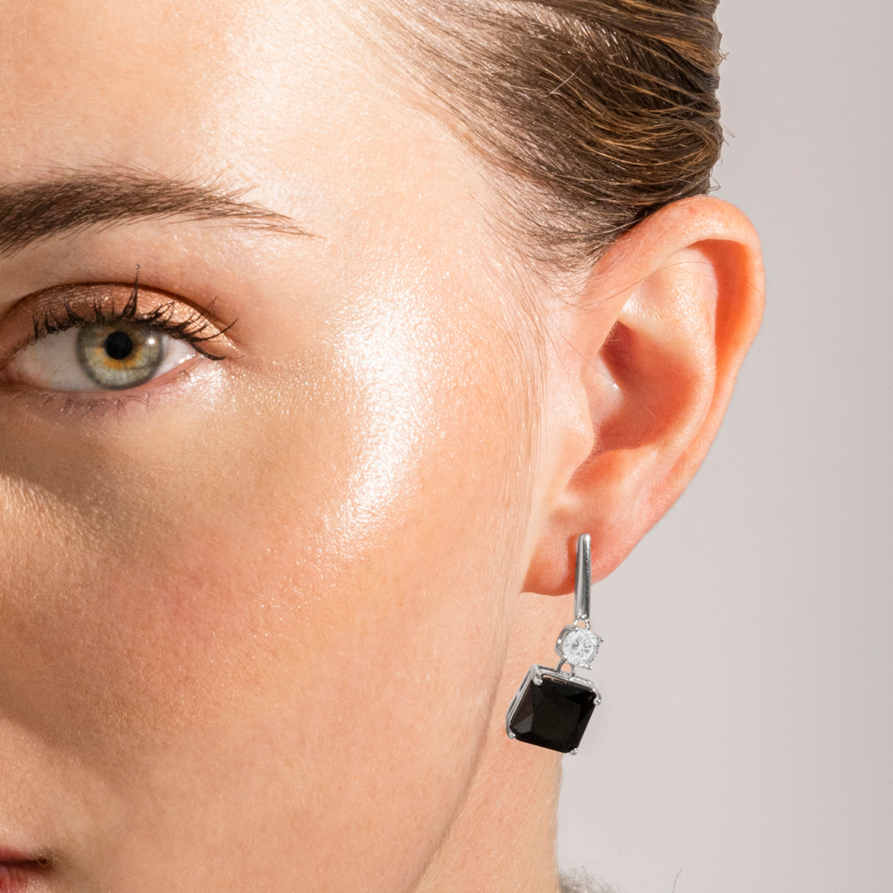 Boucles d'oreilles en argent sterling 925 et zirconium onyx finition rhodiée - Askuo