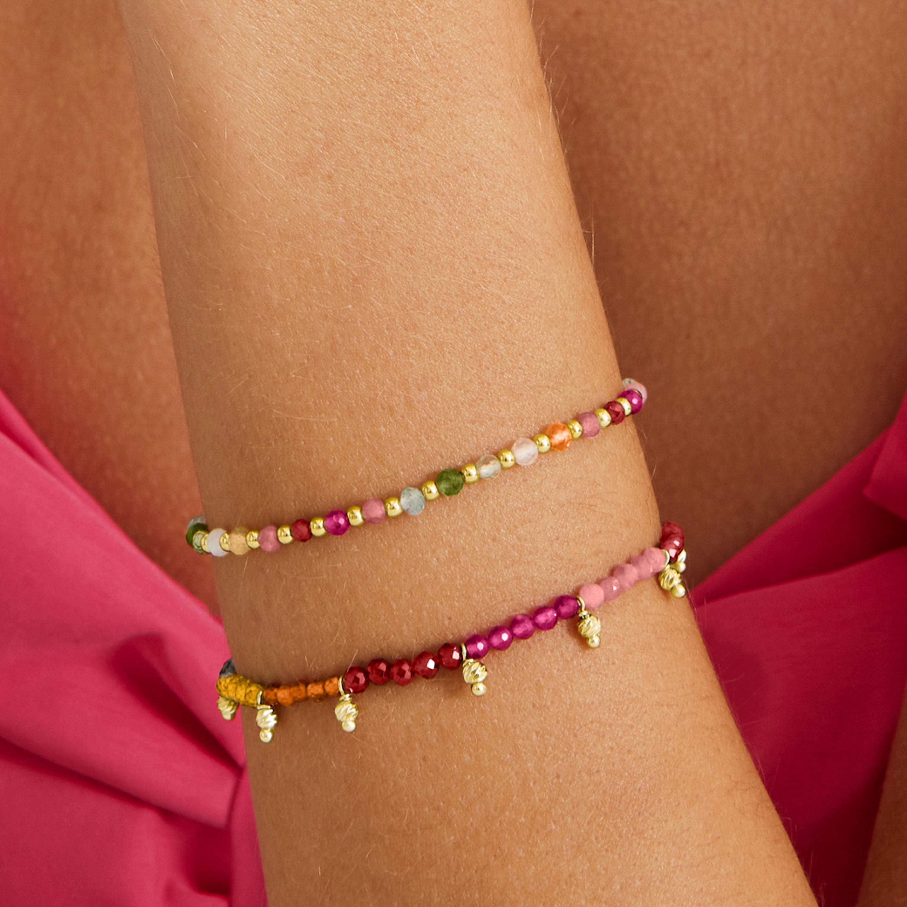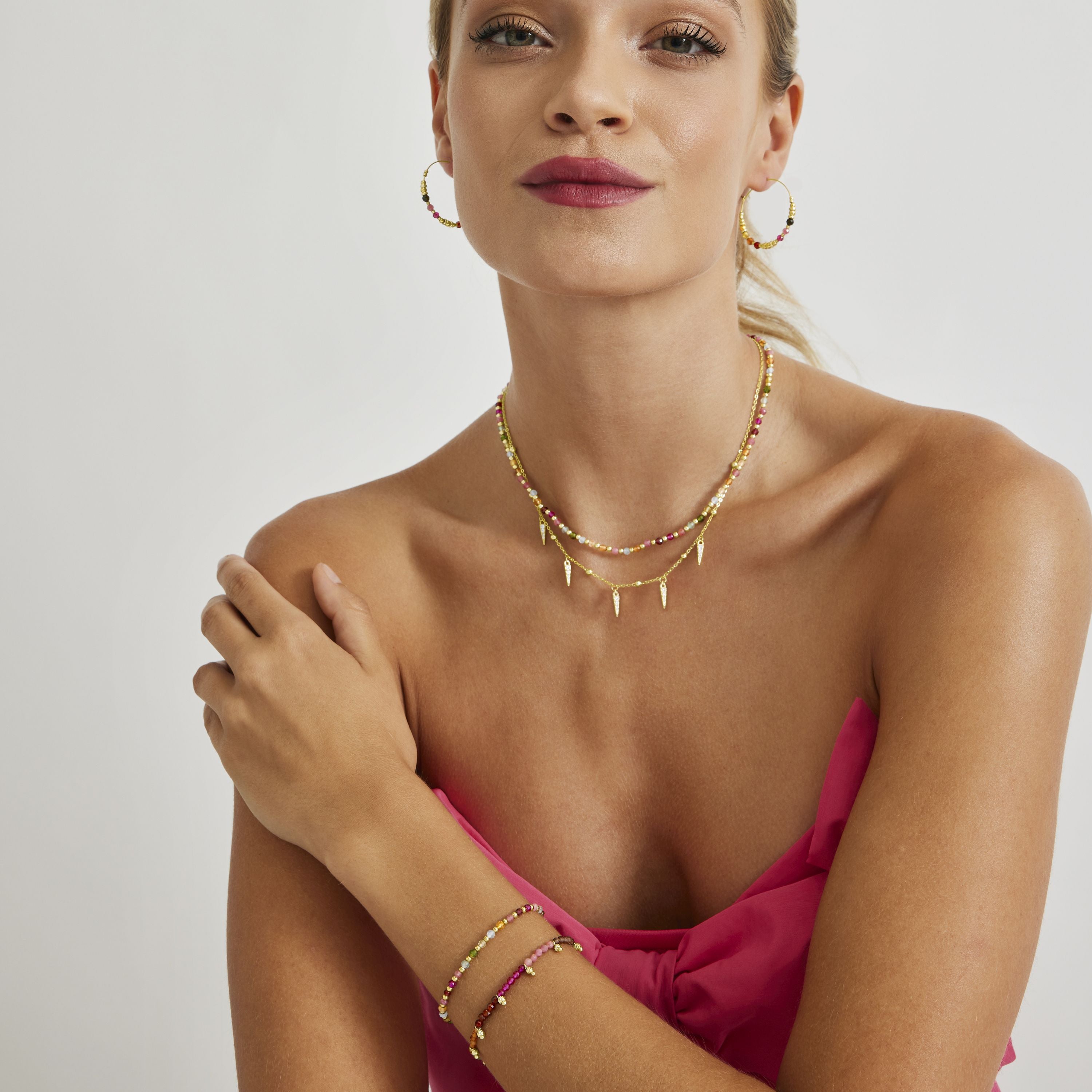 Bracelet Dirrim en perles de métal avec fermoir en argent sterling 925 finition or jaune 18 carats. "Fais un vœu" se caractérise par des designs au caractère jeune, pleins de sens et de couleur, originaux tout en restant discrets, destinés à devenir de petits amulettes.