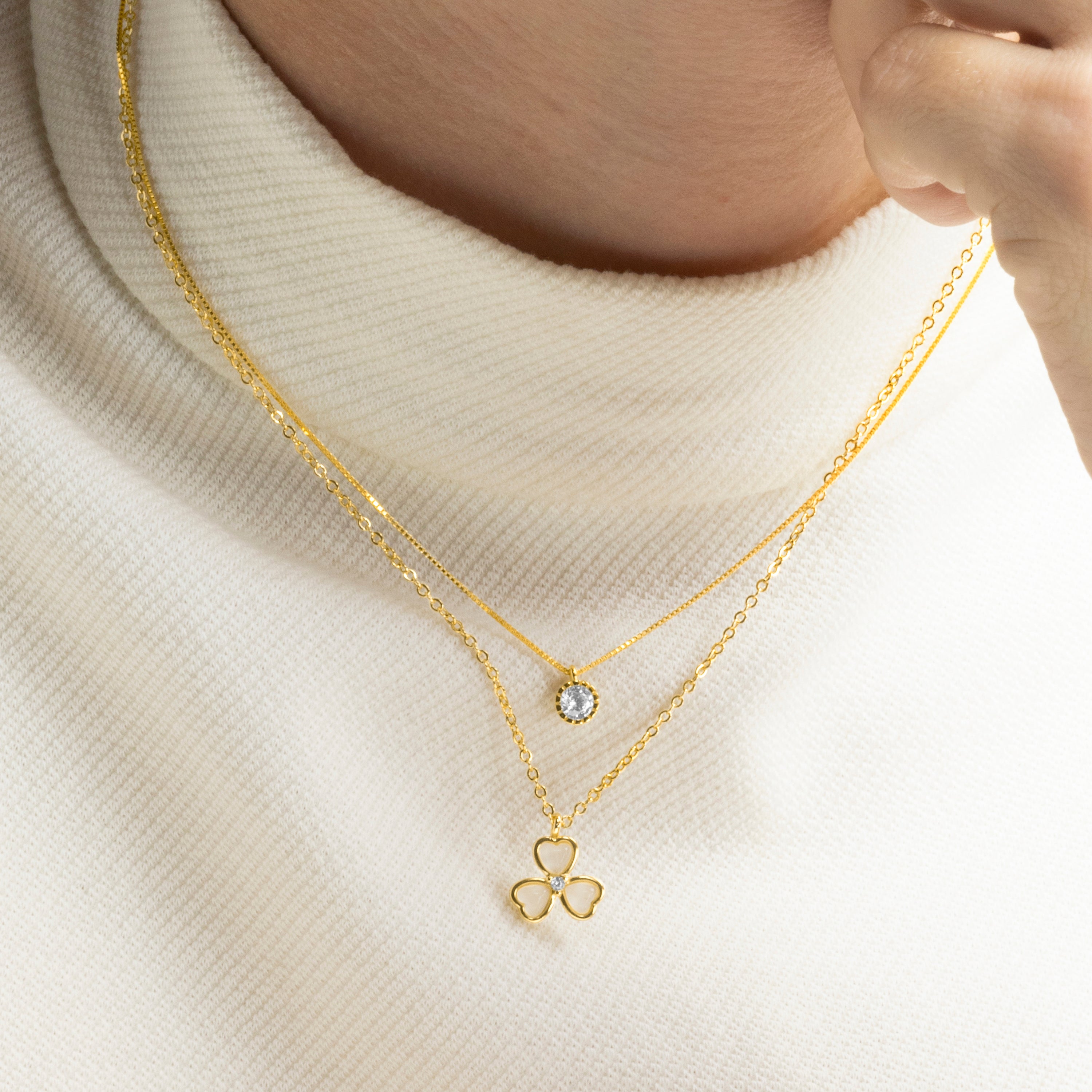Collier en argent sterling 925 avec zircon brillant finition en or jaune 18K - Naadim