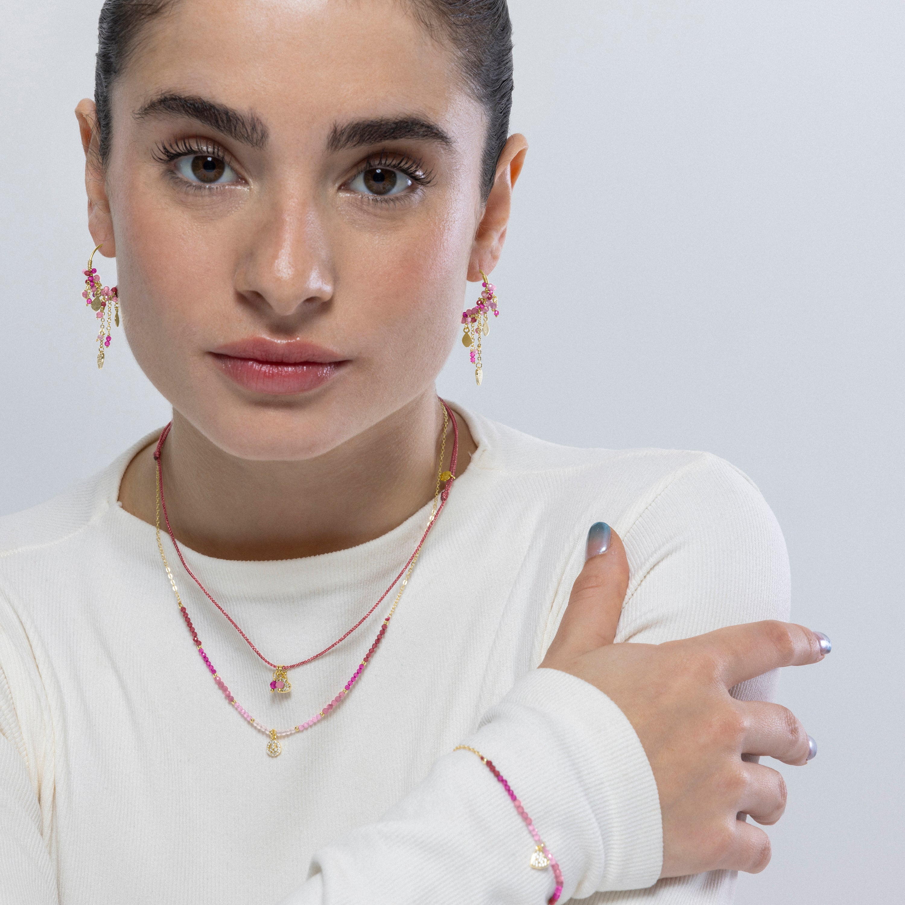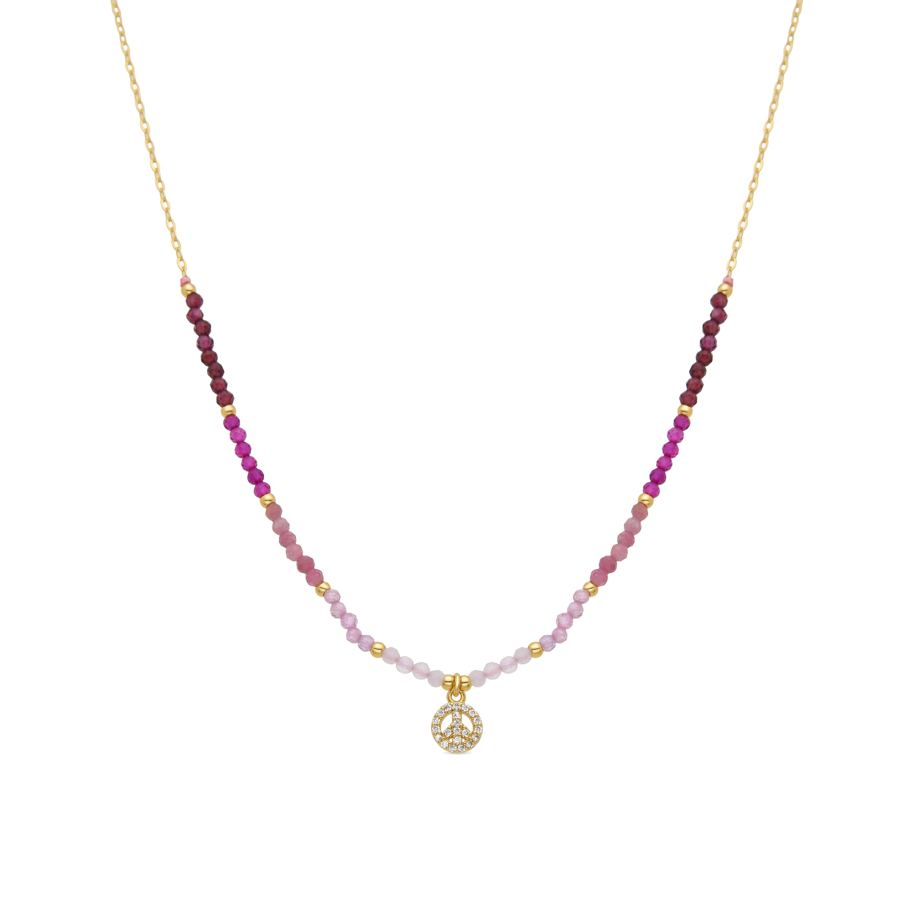Collier en argent sterling 925 et cristal rose finition or jaune 18k - Peace