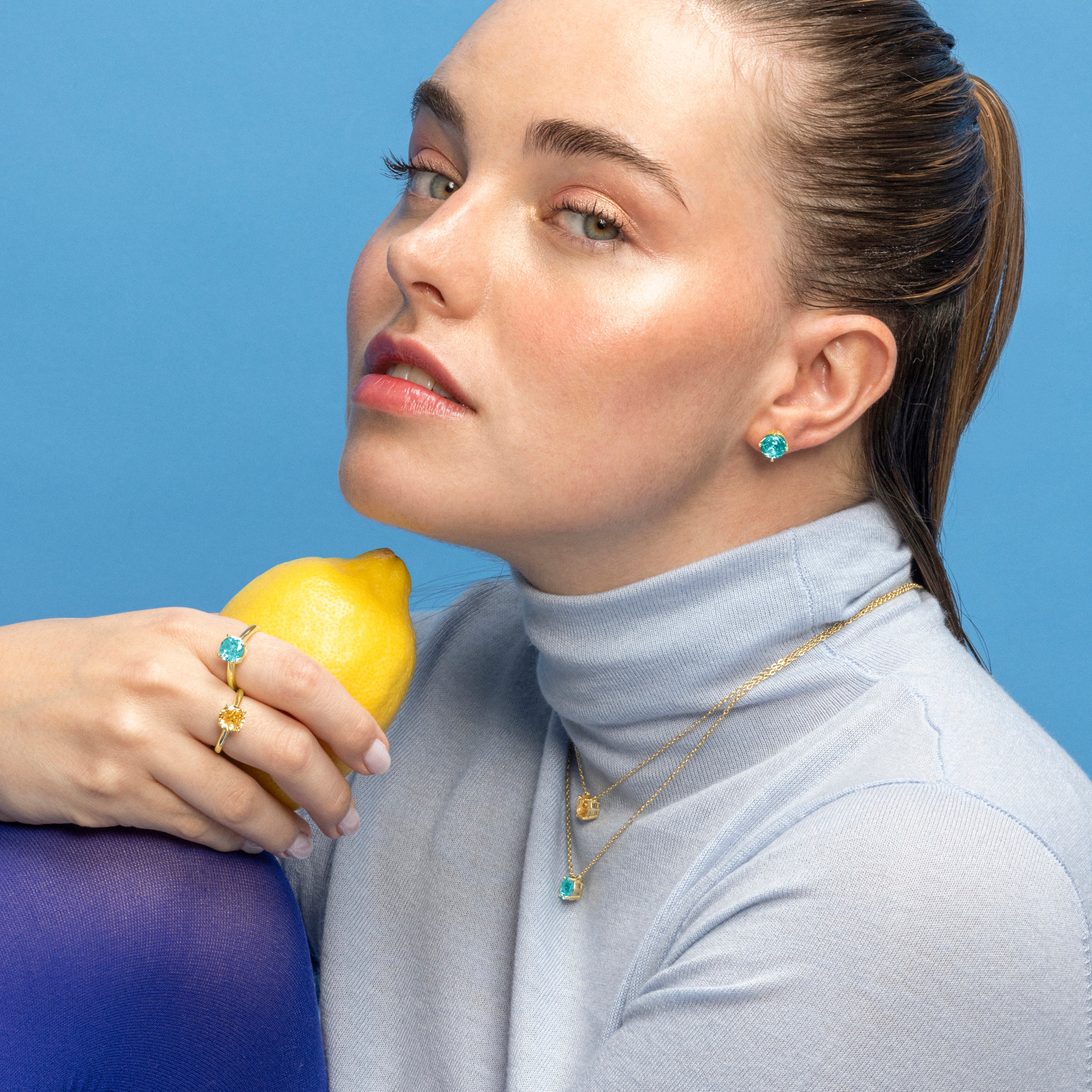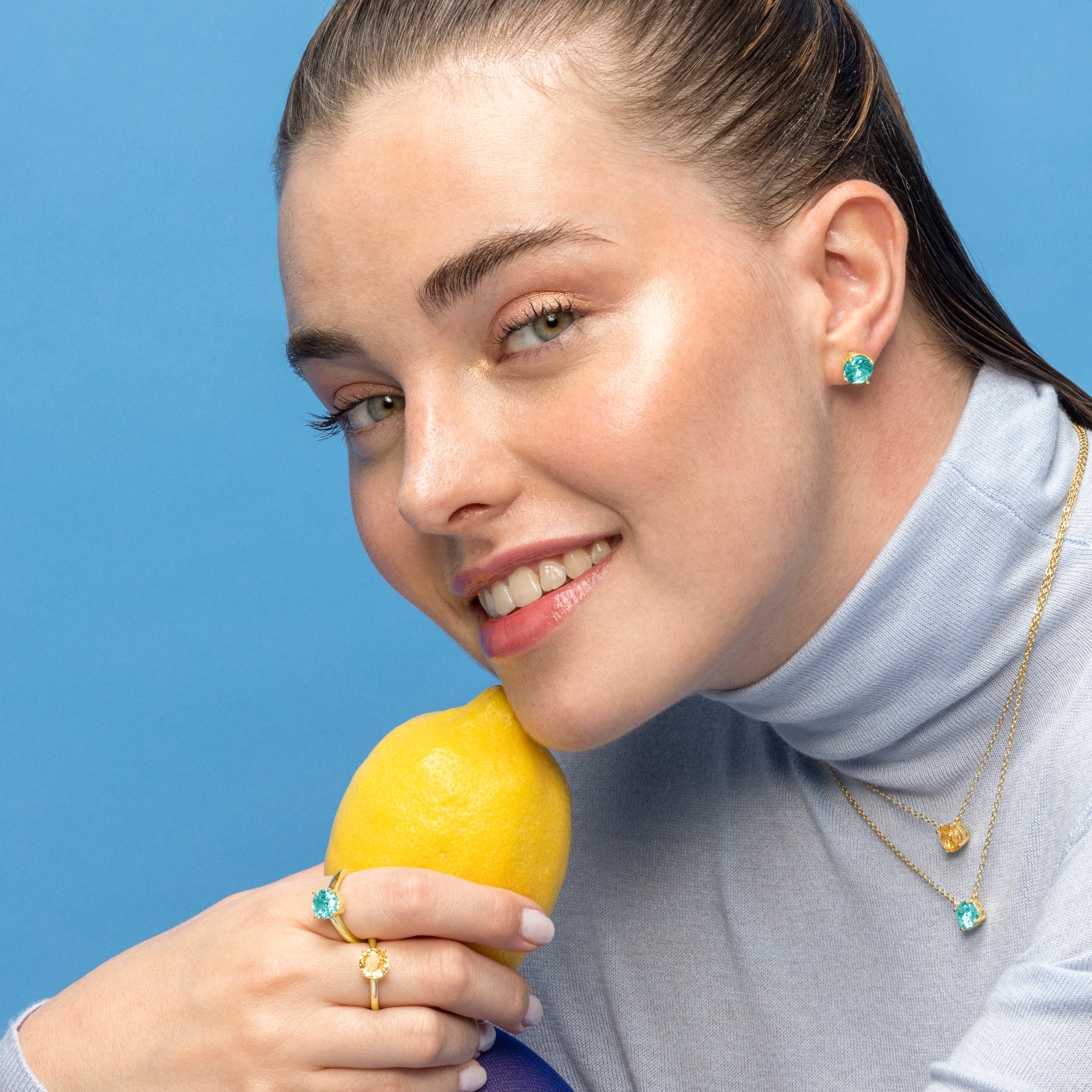 Boucles d'oreilles Baran en argent sterling 925 et quartz hydrothermal vert clair, finition en or jaune 18 carats. Atelier transmet la tendance dans chaque bijou, avec des designs qui se sont adaptés à l'évolution de la mode et de la femme. C'est la ligne parfaite pour les femmes uniques qui veulent apporter une touche de couleur à leur quotidien.