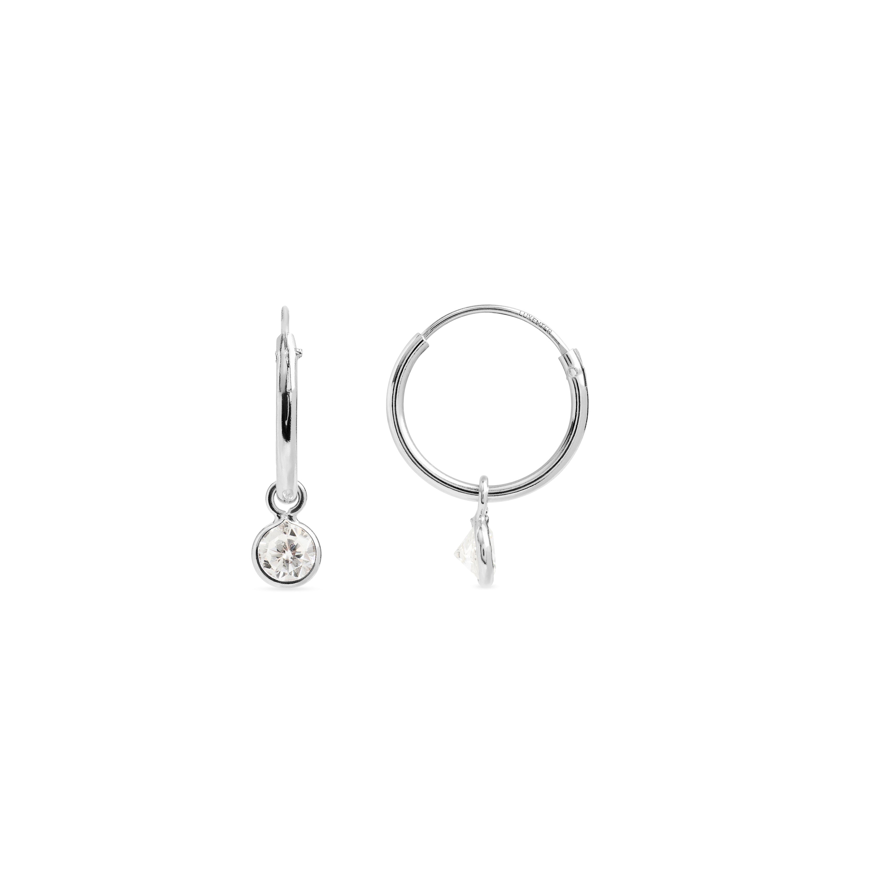 Boucles d'oreilles essentielles en argent sterling 925 et zircon brillant avec finition en rhodium. Essential incarne la simplicité raffinée, des pièces intemporelles aux lignes douces et à l'éclat supplémentaire des zircons. Des bijoux basiques sans prétention, parfaits pour un usage quotidien, mais qui peuvent aussi convenir pour des occasions spéciales.