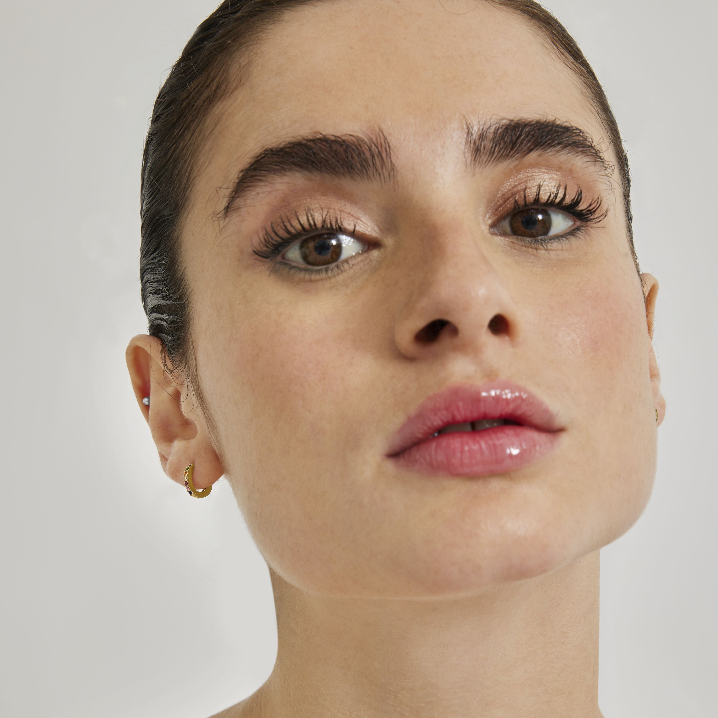 Boucles d'oreilles de 7mm en argent sterling 925 avec zircon multicolore finition en or jaune 18K - Leofcar